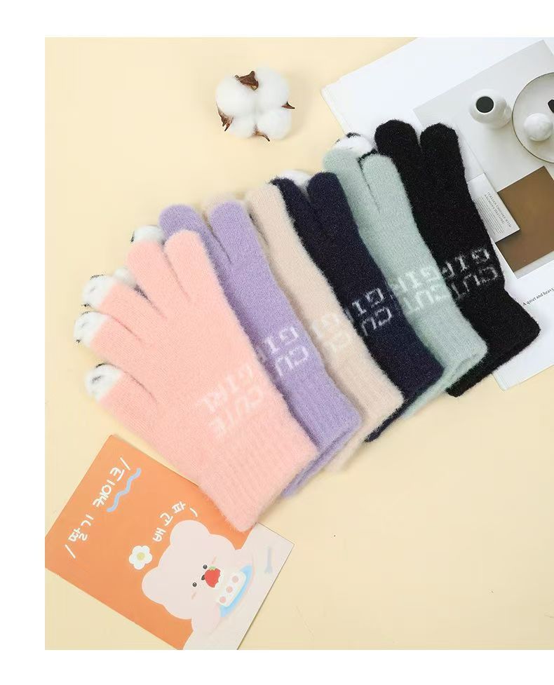 여성용 겨울 새 스타일 귀여운 만화 학생 장갑, 따뜻하고 달콤하며 패셔너블하고 다재다능하며 운전에 적합하며 따뜻한 터치 스크린스토어 가기