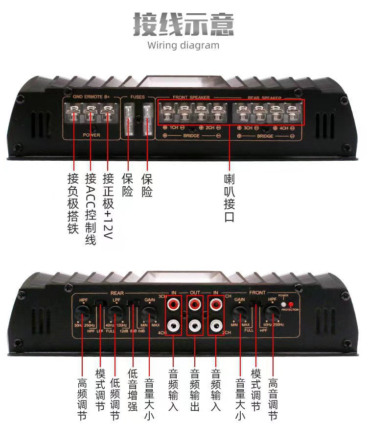 공장 도매 4 채널 4*100W 자동차 오디오 수정 전력 증폭기 M668 고출력 4 방향 자동차
