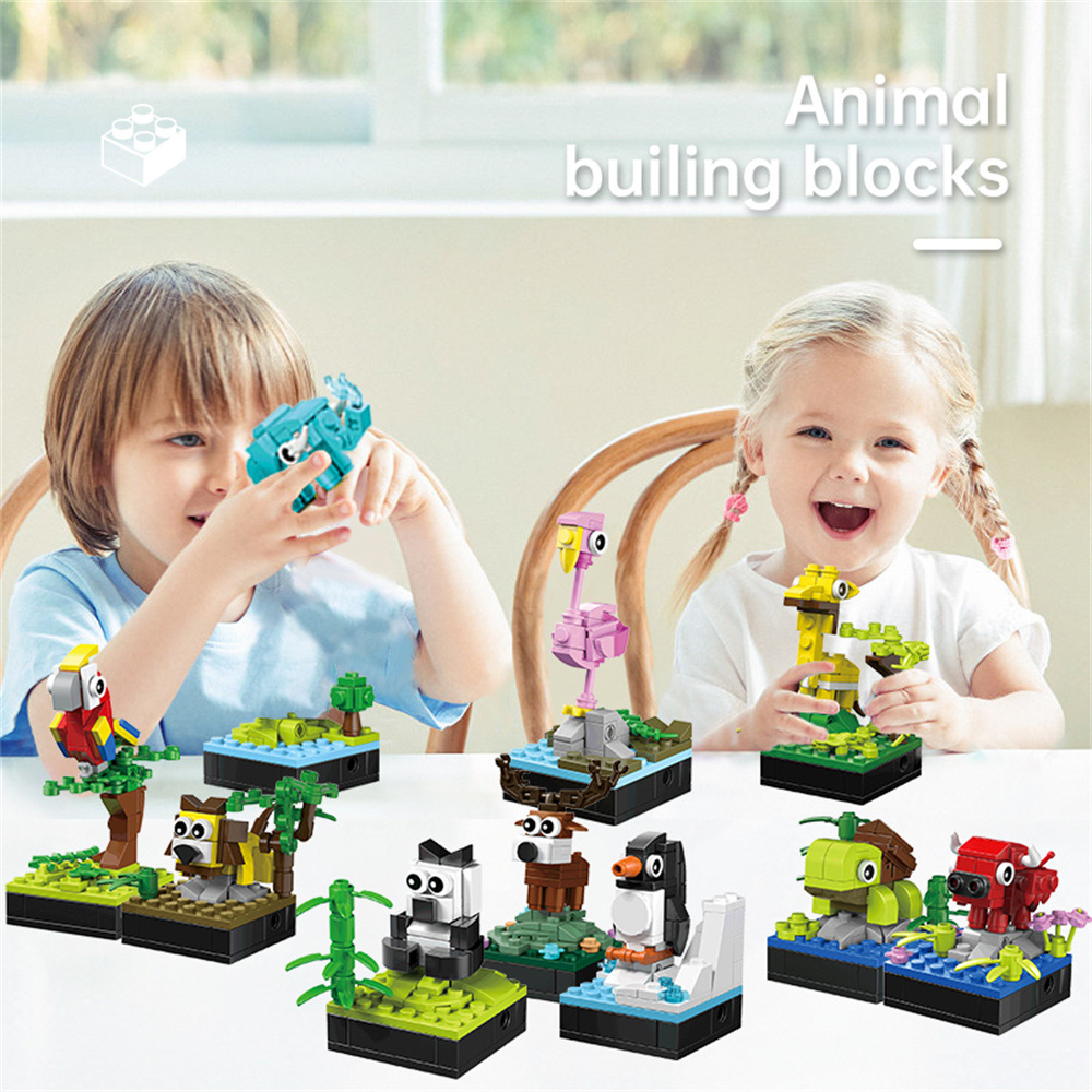 국경 간 영어 동물 호환 레고 작은 입자 빌딩 블록 모델 장식품 어린이 교육 조립 선물 장난감스토어 가기