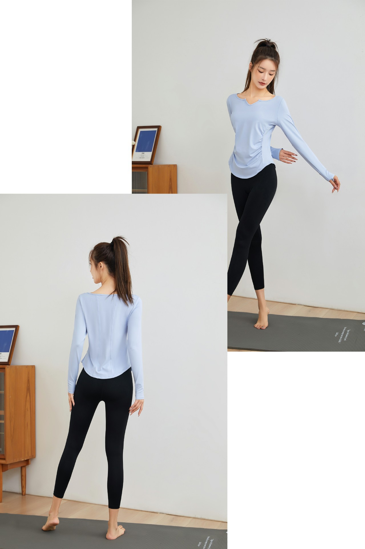 요가 의류 긴팔 최고 여성 느슨한 통기성 요가 티셔츠 블라우스 V 넥 빠른 건조 달리기 스포츠 피트니스 의류 가을과 겨울
