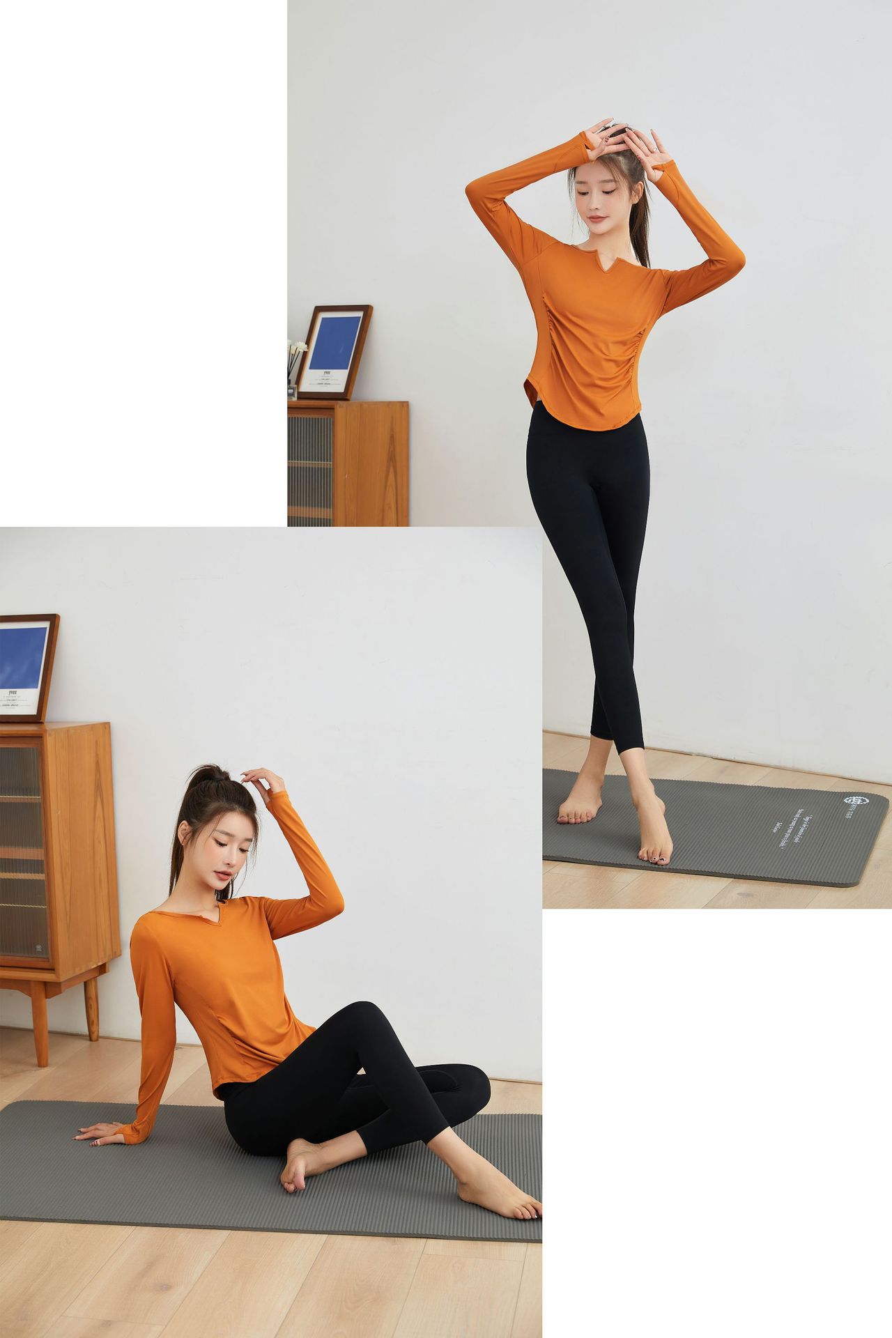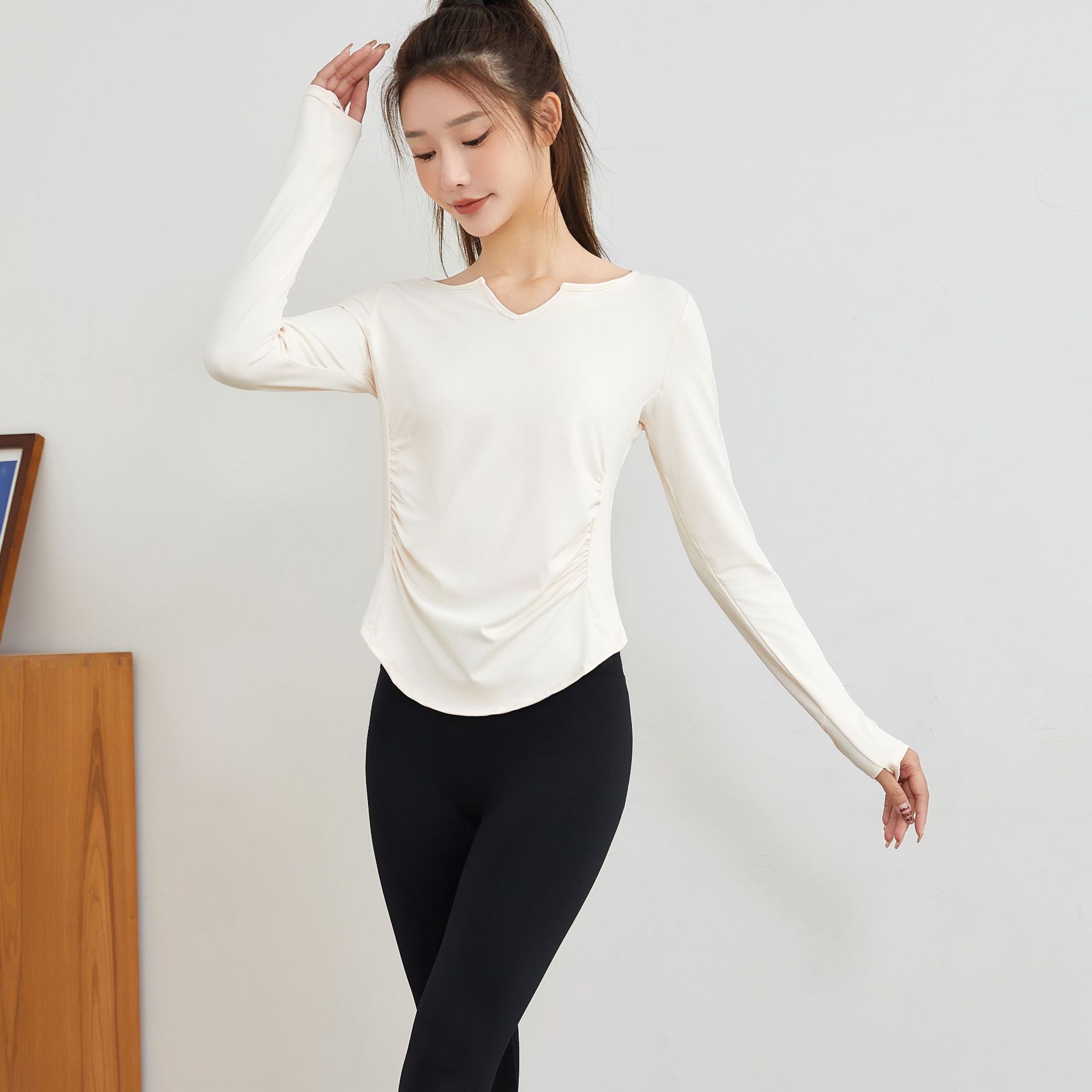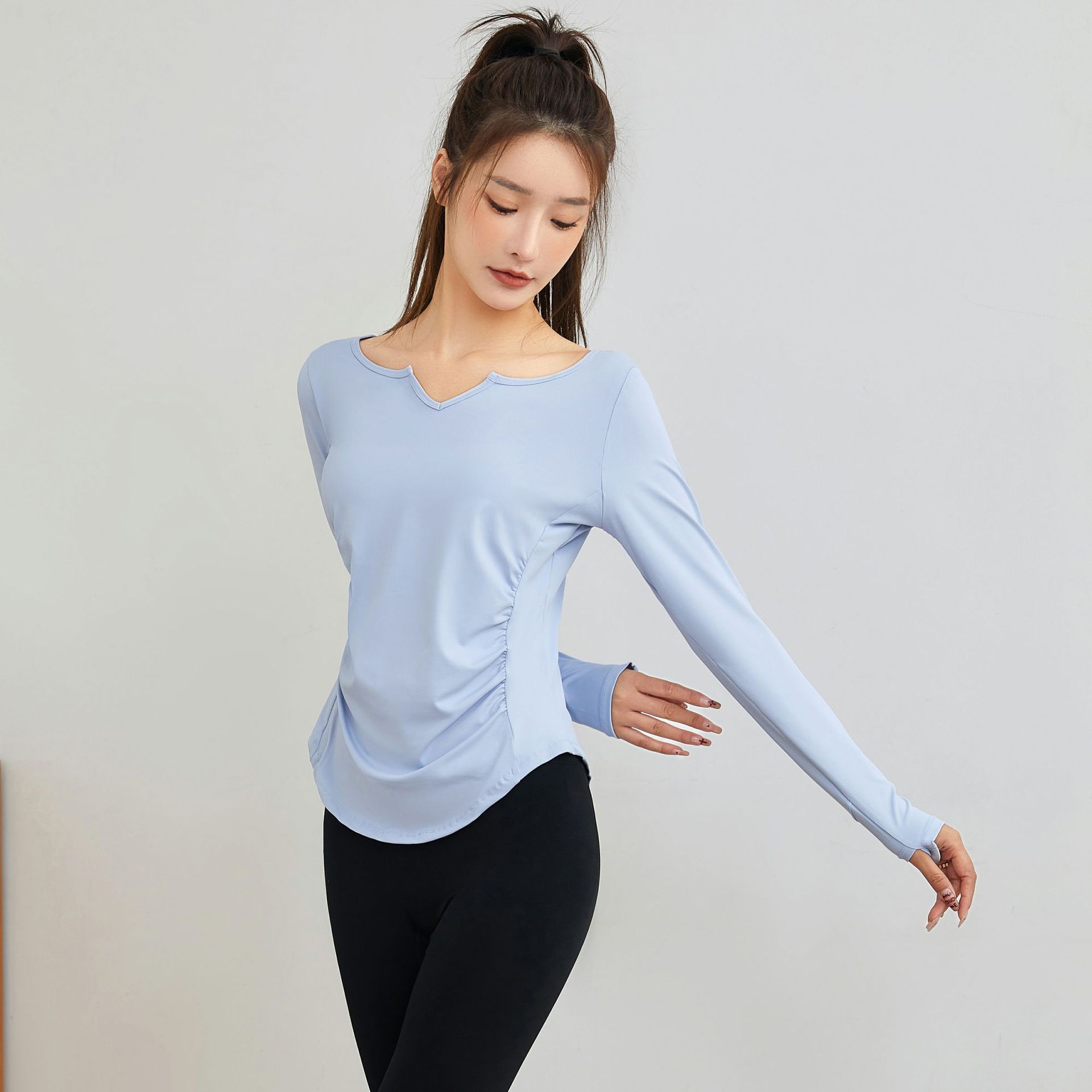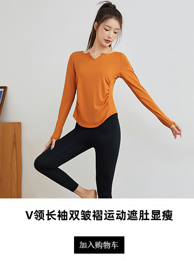 요가 의류 긴팔 최고 여성 느슨한 통기성 요가 티셔츠 블라우스 V 넥 빠른 건조 달리기 스포츠 피트니스 의류 가을과 겨울스토어 가기