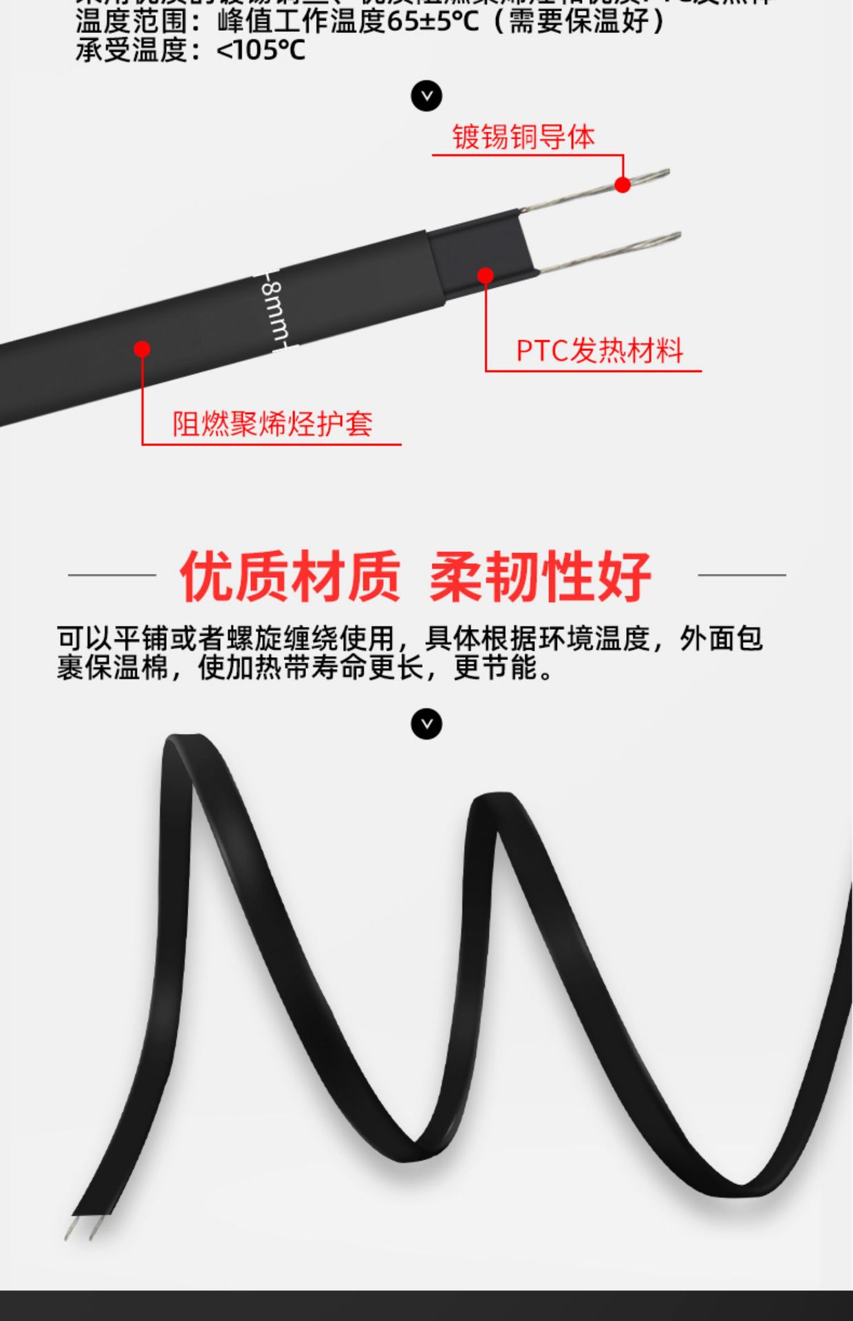 • 두꺼운 두 개의 플러그 코드 + 방열 테이프 8m