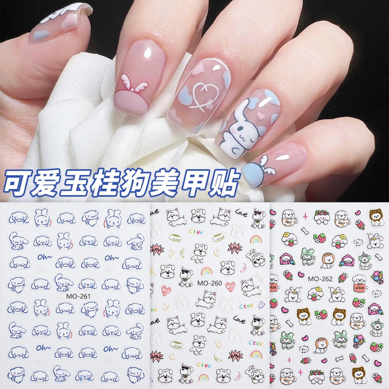 귀여운 구호 네일 아트 스티커 만화 옥 계피 개 곱슬 강아지 네일 장식 DIY 손 계정 소재 스티커스토어 가기