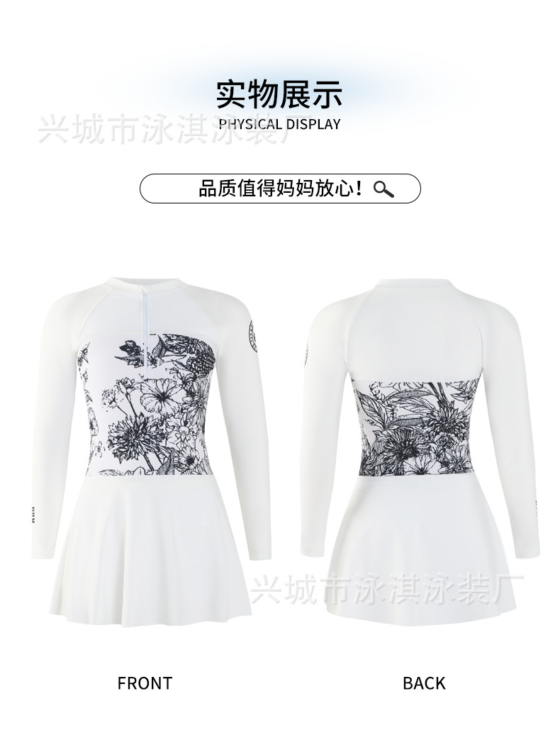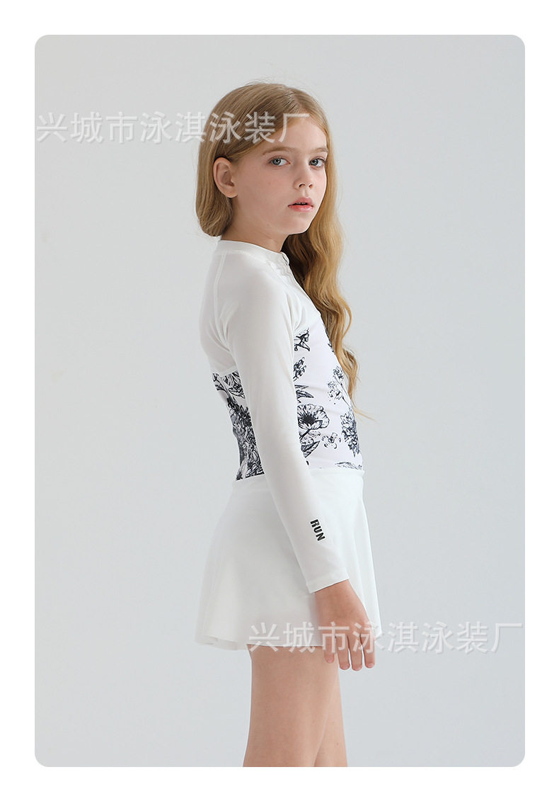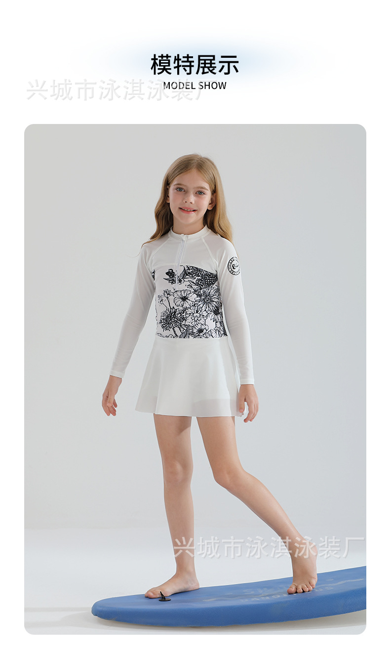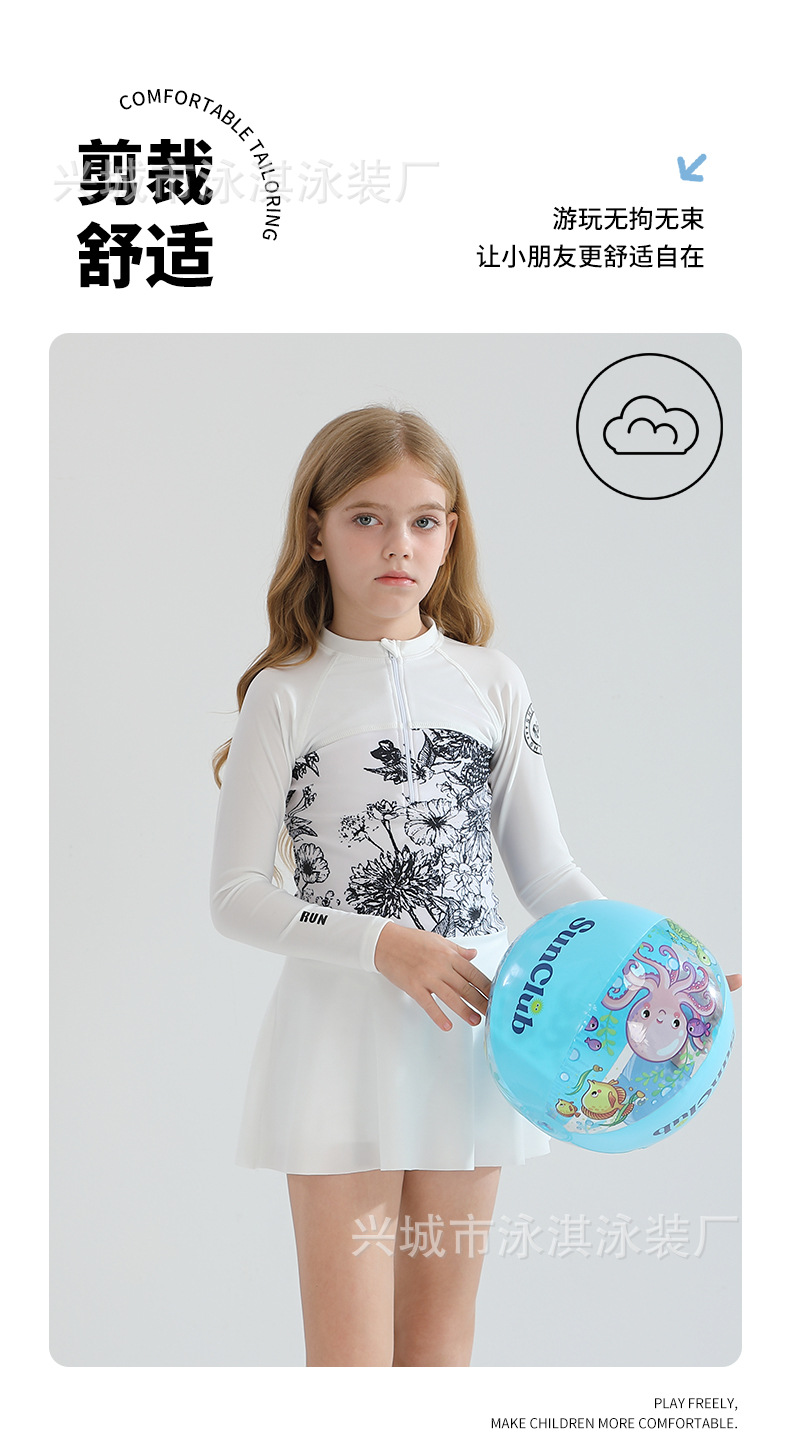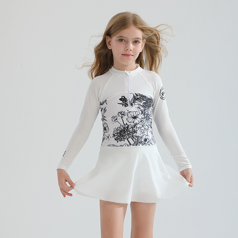 2025 새로운 어린이 수영복 소녀 지퍼 분할 긴 소매 태양 보호 수영복 큰 어린이 온천 수영 세트