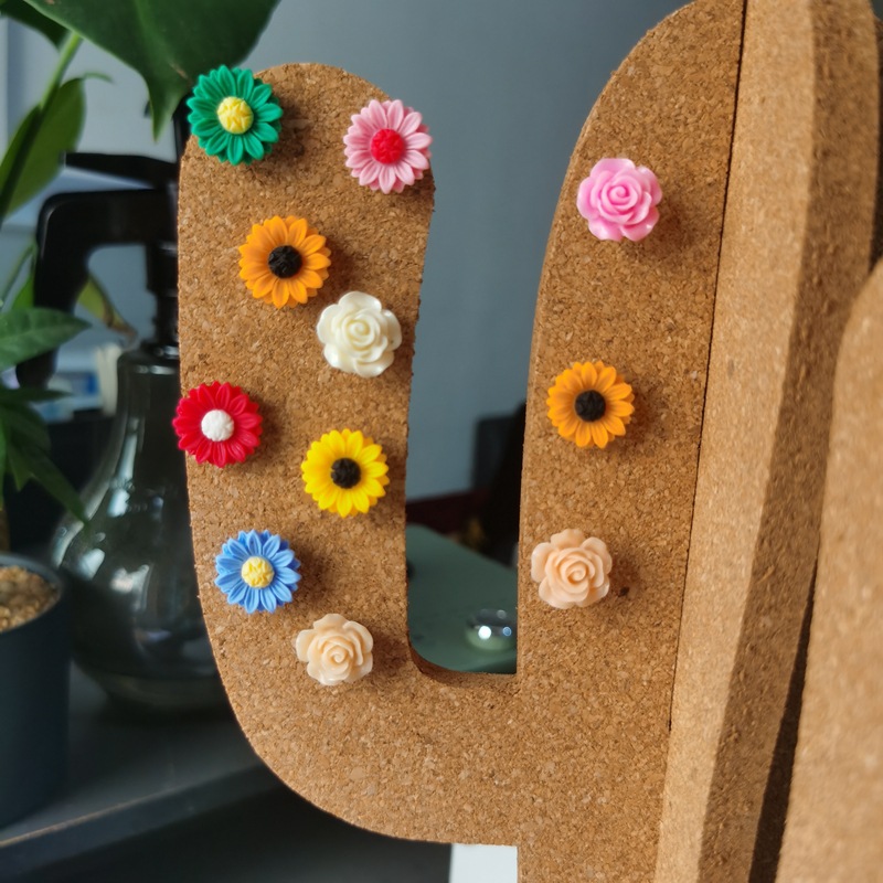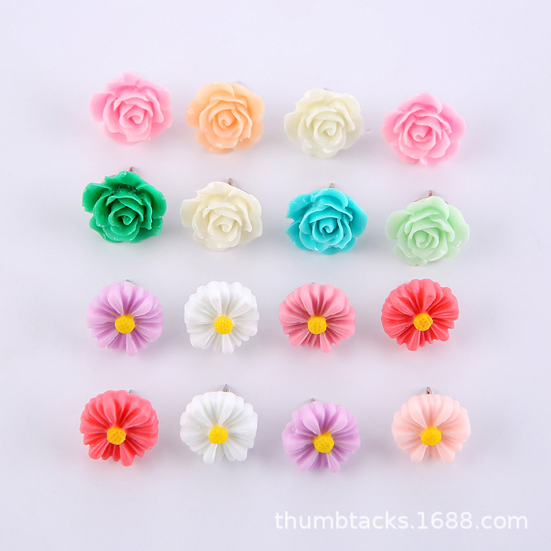 아마존 창조적 인 컬러 수지 장미 작은 데이지 꽃 창조적 인 썸택 코르크 보드 프레스 네일 도매 국경