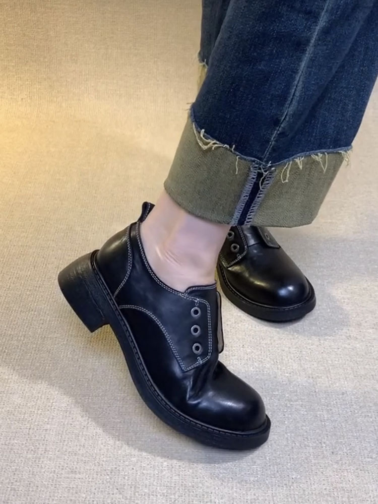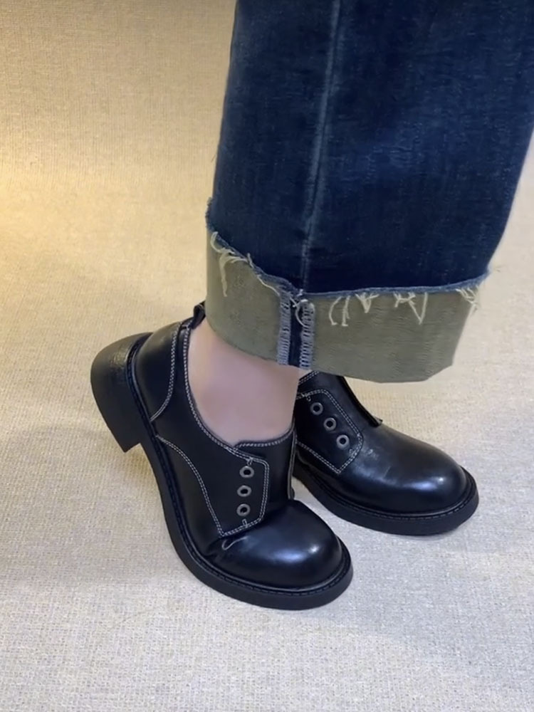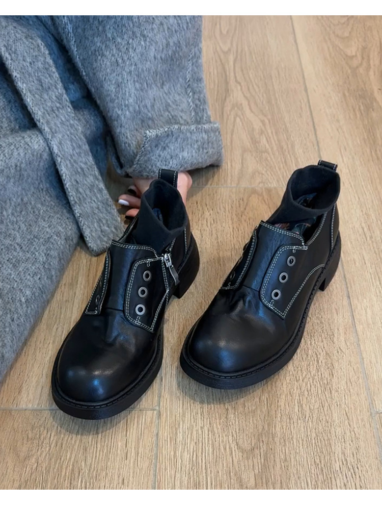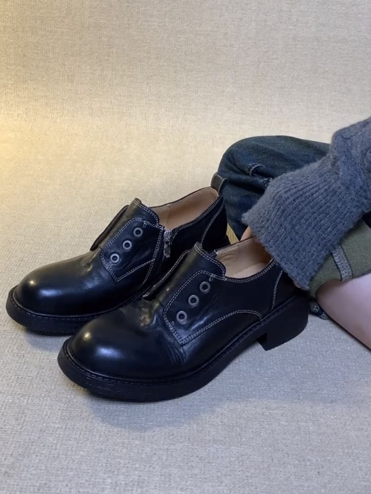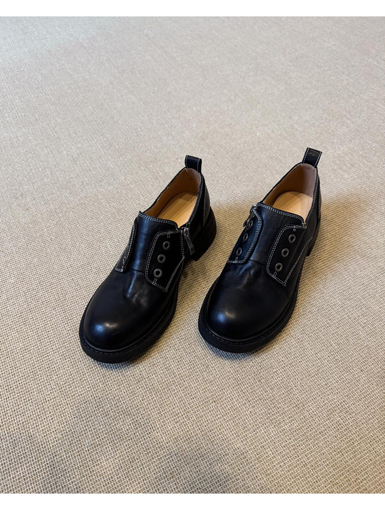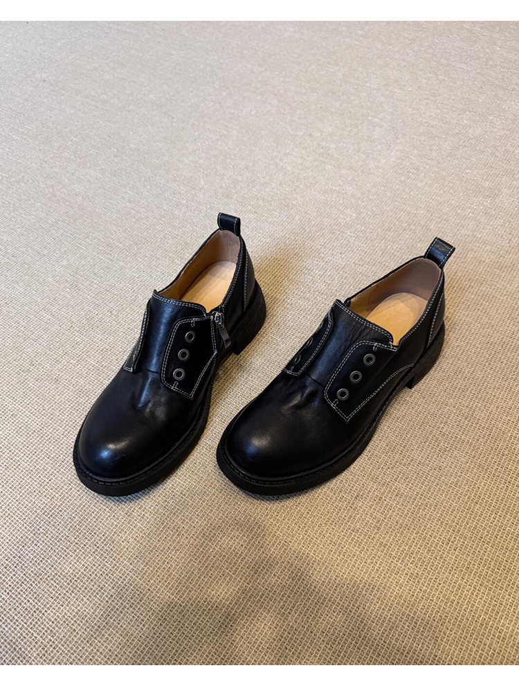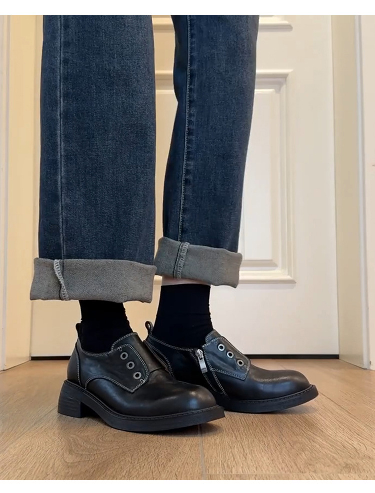 Cowhide 버전 ~ Side Zipper Round Toe Loafers 여성용 블랙 정품 가죽 두꺼운 밑바닥 두꺼운 단일 레이어 신발 올매치 영국 가죽 신발스토어 가기