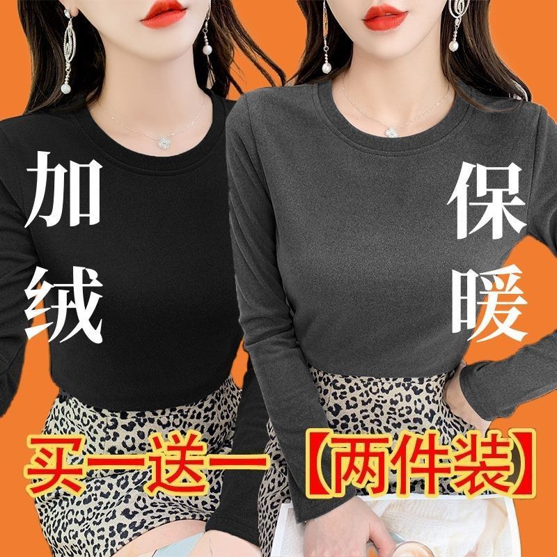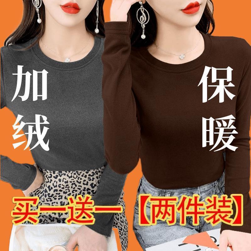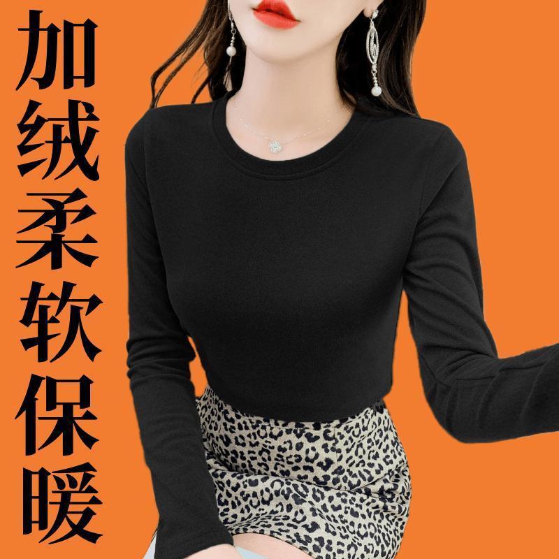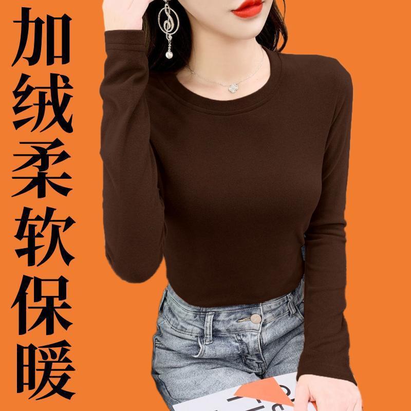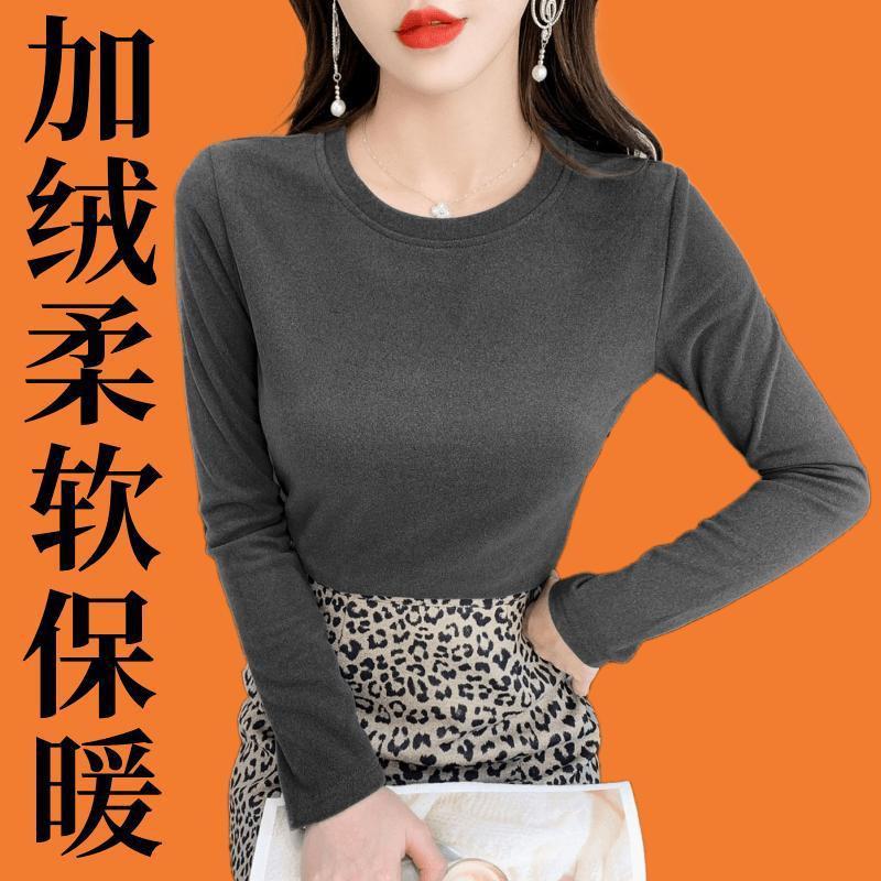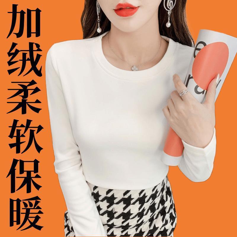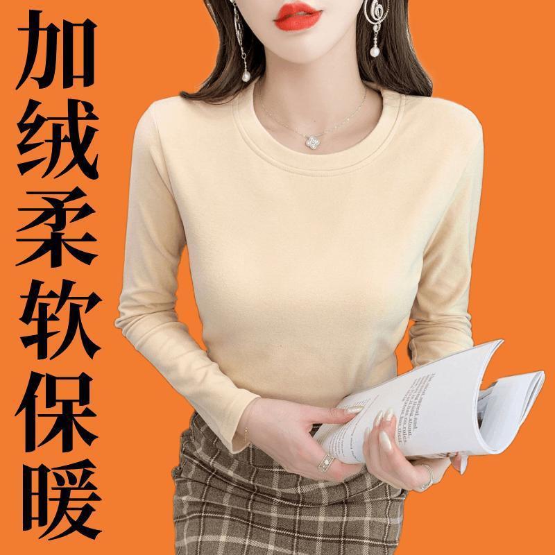 양털베이스 셔츠 내부와 봄 가을 착용 2024 새로운 올매치 라운드 넥 슬림핏 긴소매 기모 따뜻한 옷 여성용 내복스토어 가기