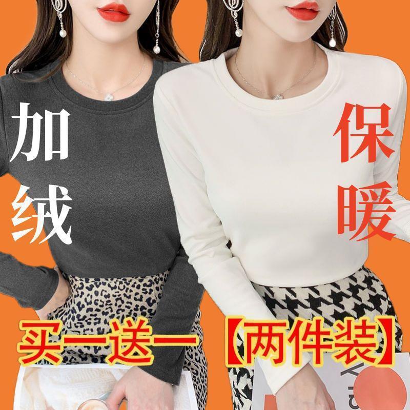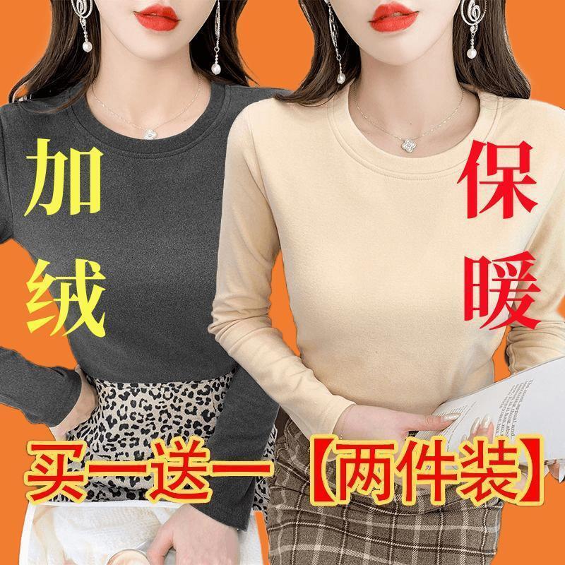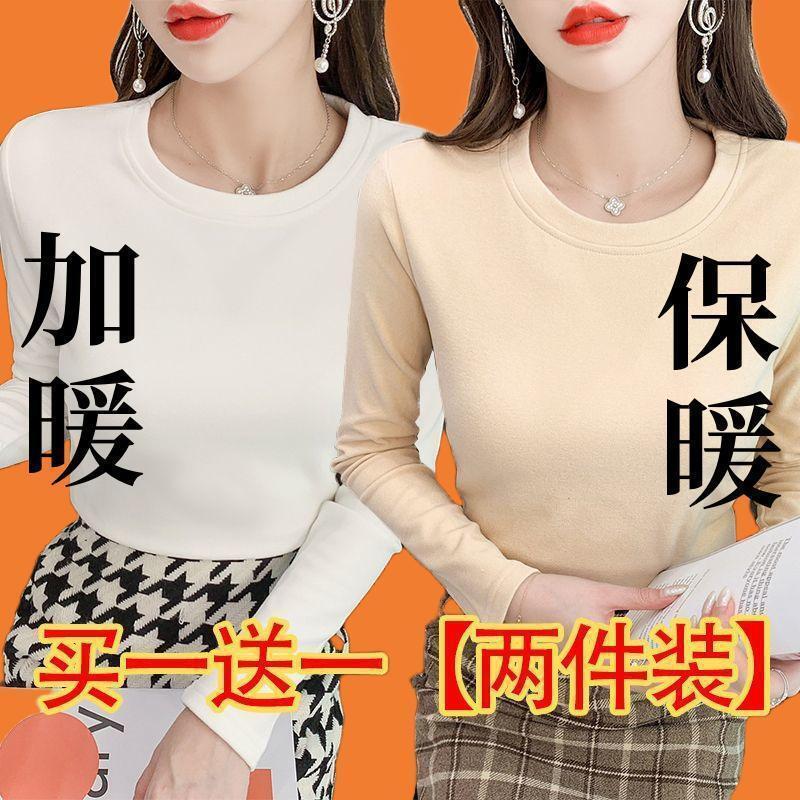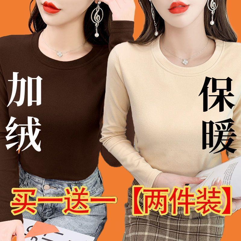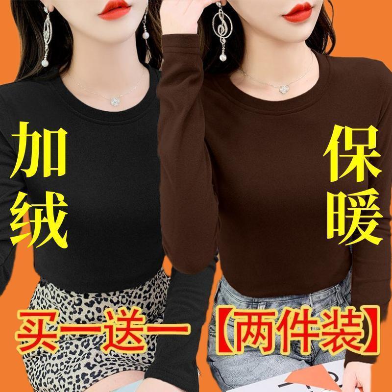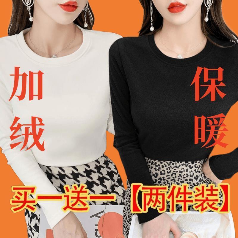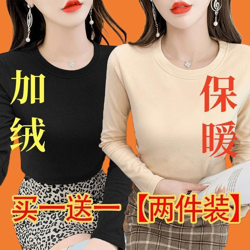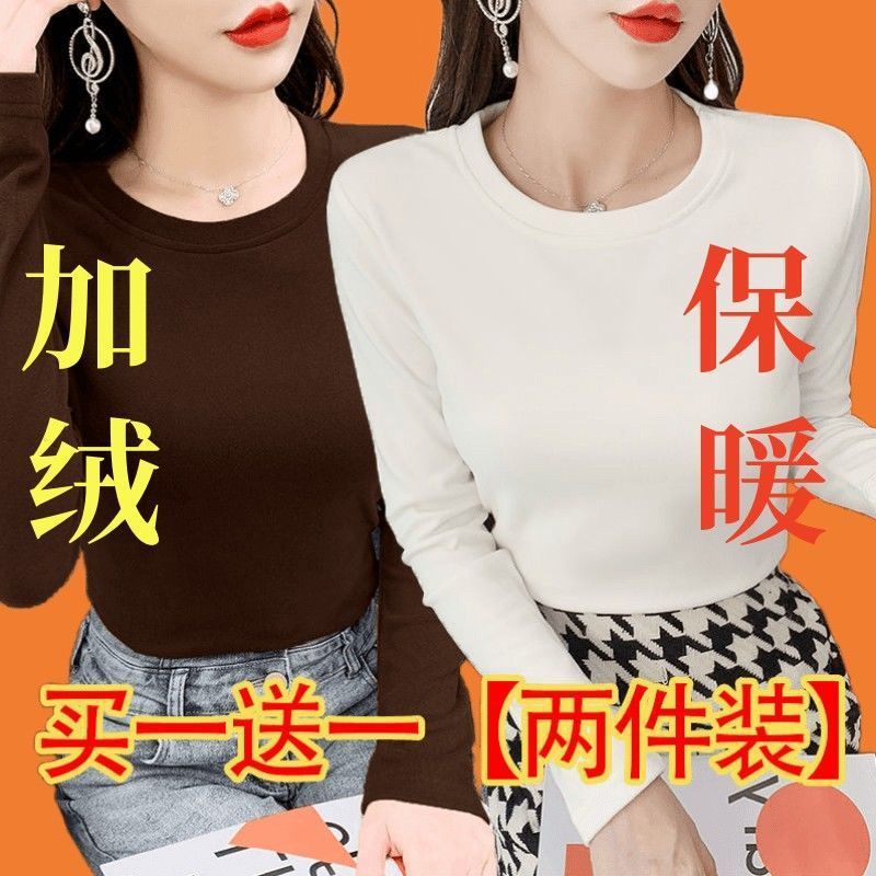 양털베이스 셔츠 내부와 봄 가을 착용 2024 새로운 올매치 라운드 넥 슬림핏 긴소매 기모 따뜻한 옷 여성용 내복스토어 가기