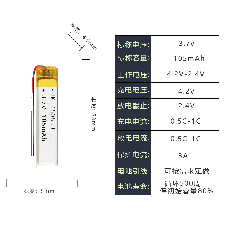 450833 폴리머 리튬 배터리 105mah 포인트 펜 녹음 펜 교수형 넥 헤드셋 디지털 제품 충전식 배터리