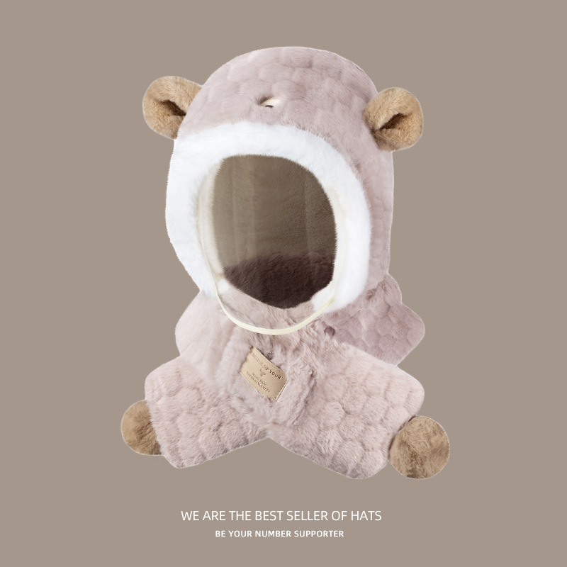 곰 모자 스카프 통합 어린이 겨울 두꺼운 따뜻한 목 방지 렌즈 부모-어린이 자전거 귀 보호 캡스토어 가기