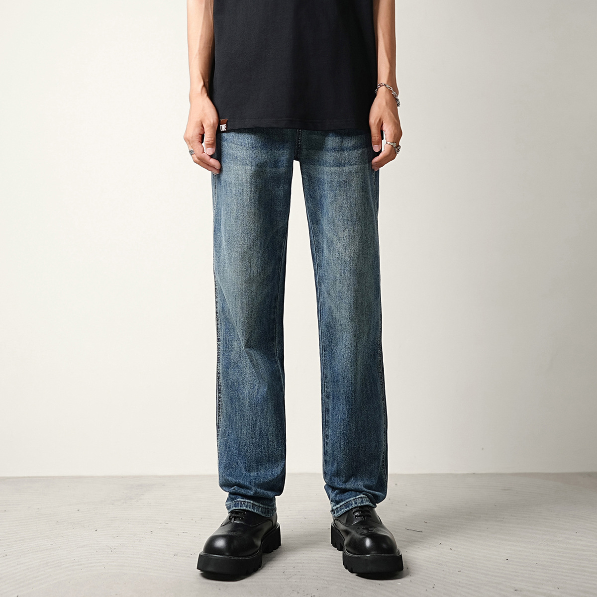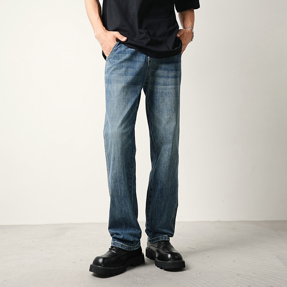 가을 새로운 빈티지 세탁 스트레치 청바지 남자 루즈 스트레이트 올 매치 트렌디 바지스토어 가기
