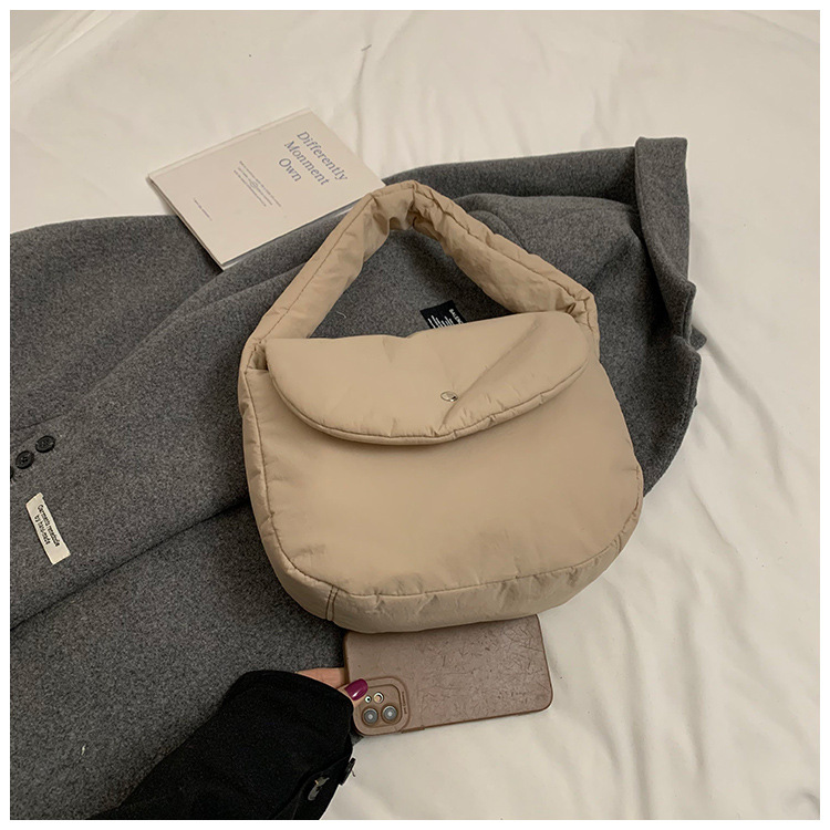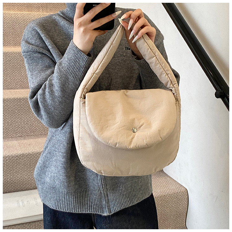 가을과 겨울 한국 스타일 면화 가방 간단한 작은 광장 가방 나일론 천 메시징 가방 단색 어깨 가방 여성용 통근 대용량 가방스토어 가기