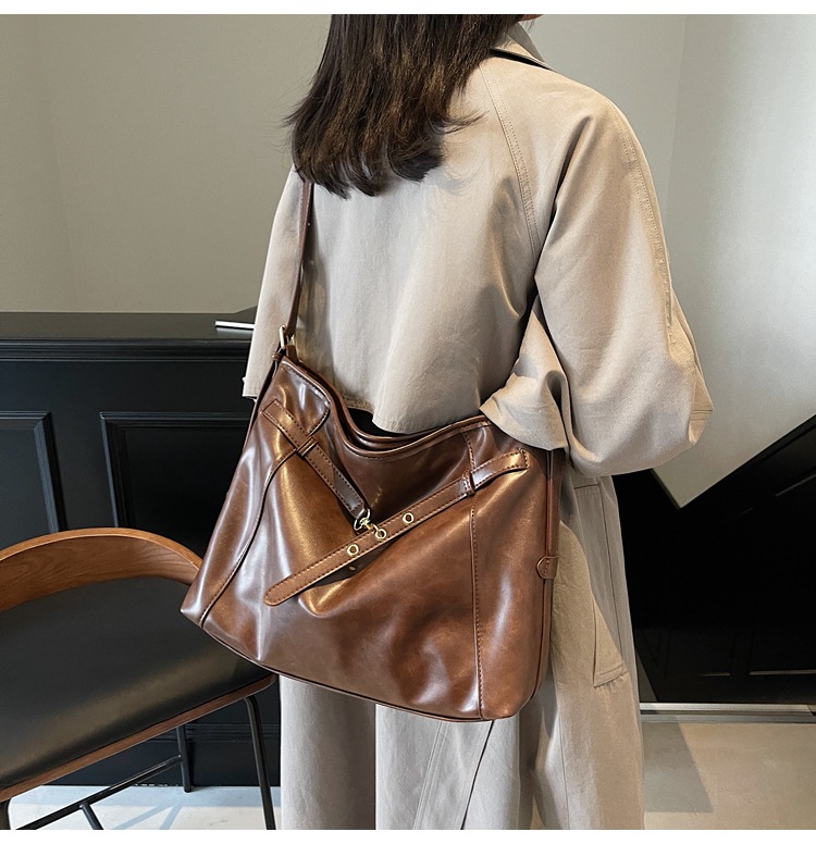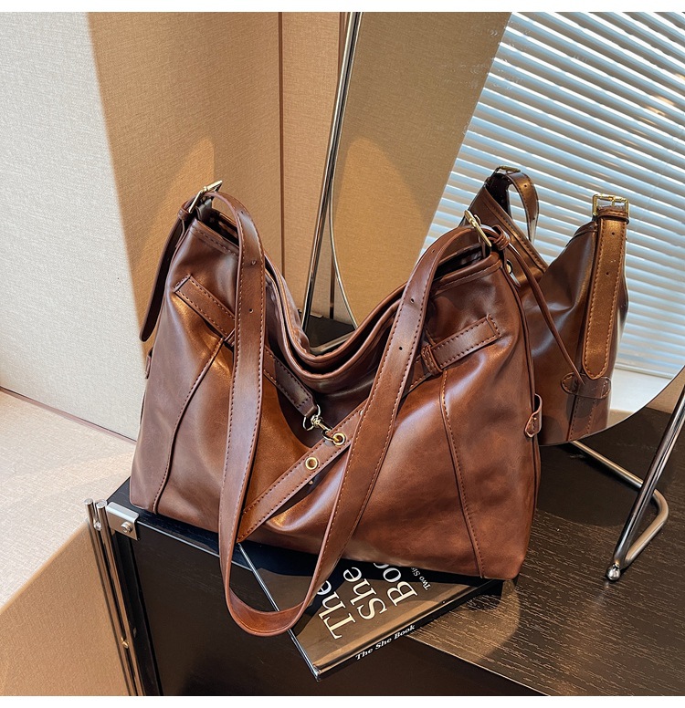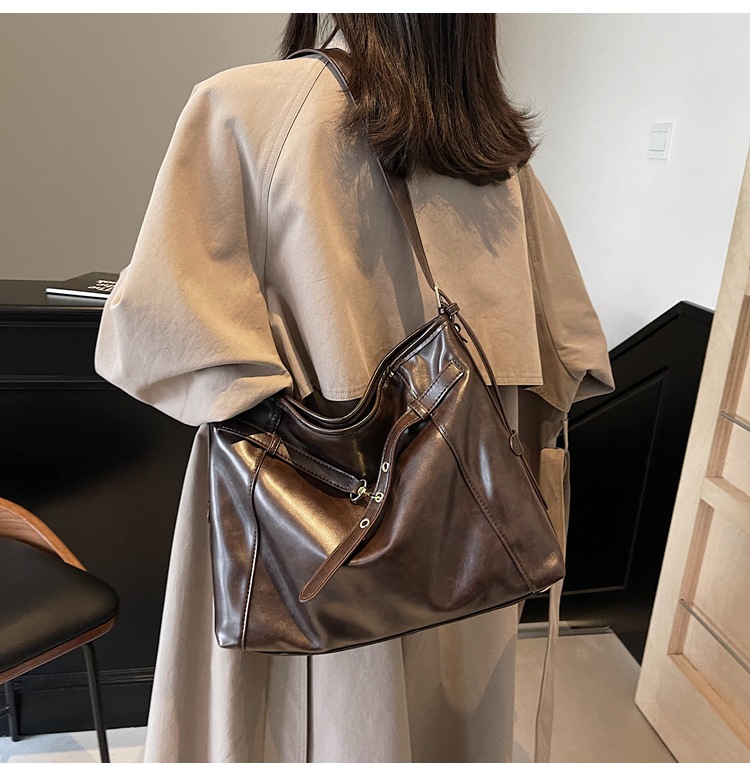 국경 간 레트로 대용량 가방 여성의 2024 가을 및 겨울 새로운 도착 어깨 가방 유행 세련된 올 매치 토트 크로스 바디 백스토어 가기