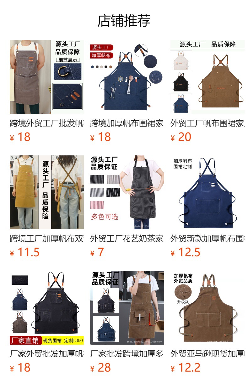 국경 간 두꺼운 캔버스 앞치마 가정용 주방 우유 차 커피 숍 원예 작업복 일반 허리 앞치마 도매스토어 가기