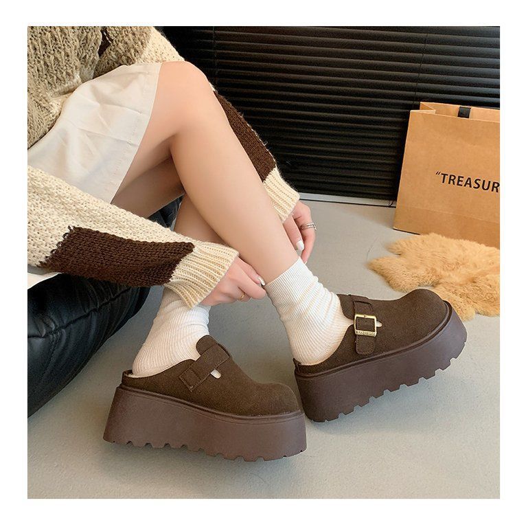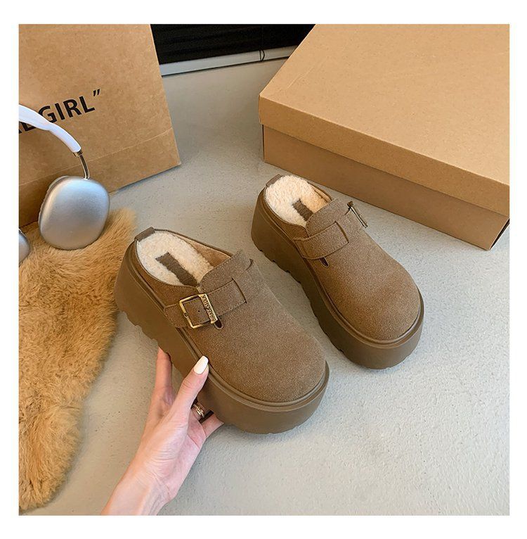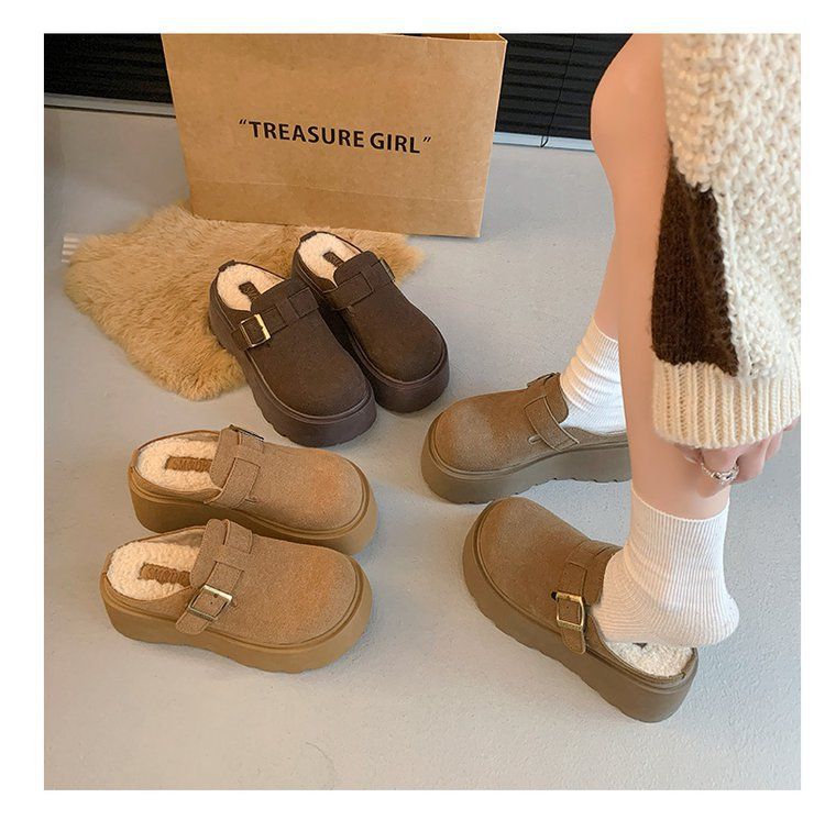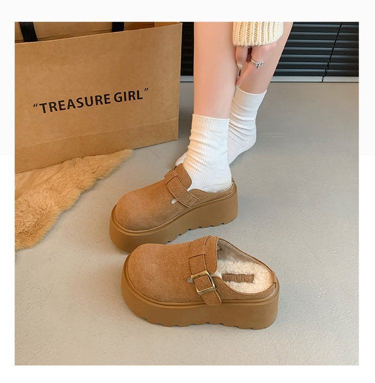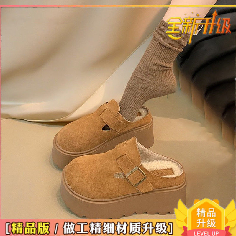 작은 복고풍 높이 8cm 별 스타일 슬리퍼 가을 및 겨울 기모 외부 착용 버켄 신발 두꺼운 단독 면 슬리퍼스토어 가기