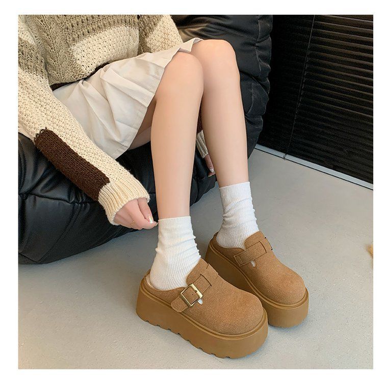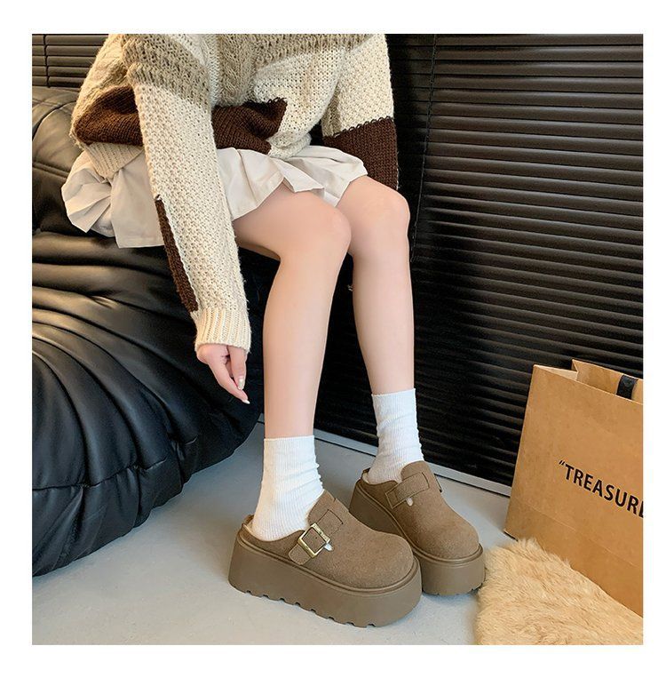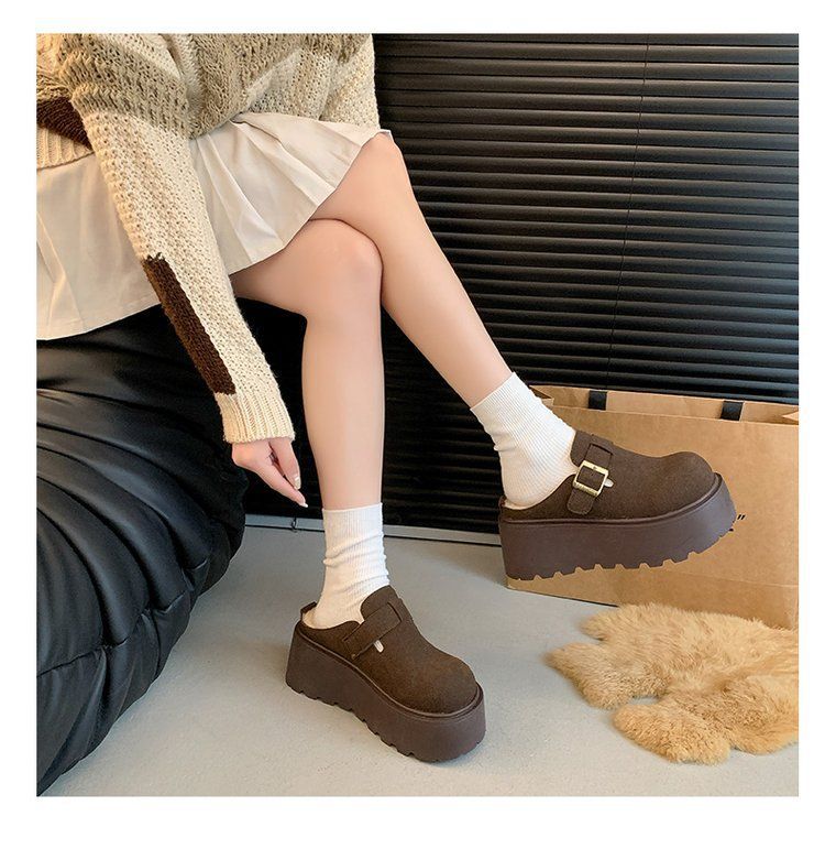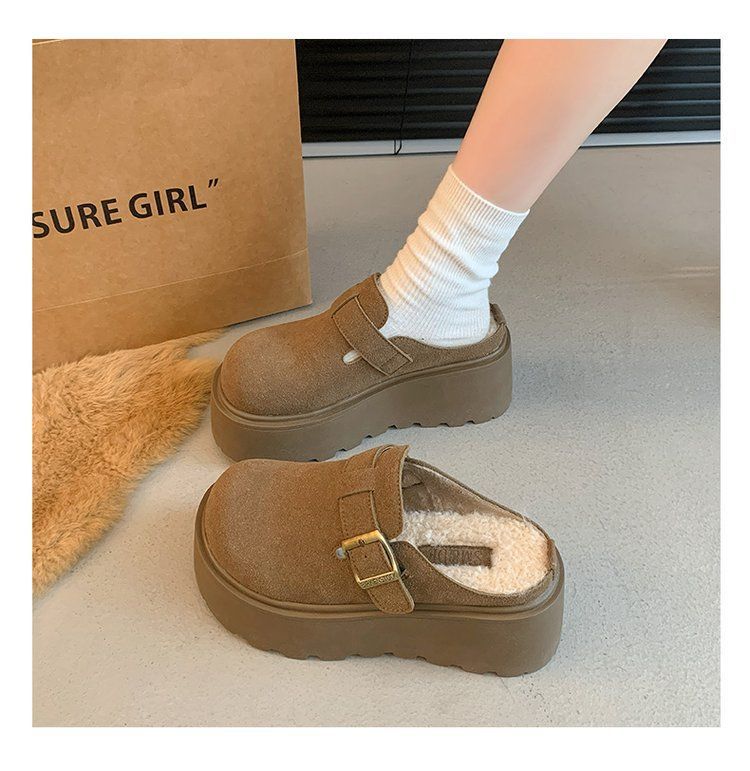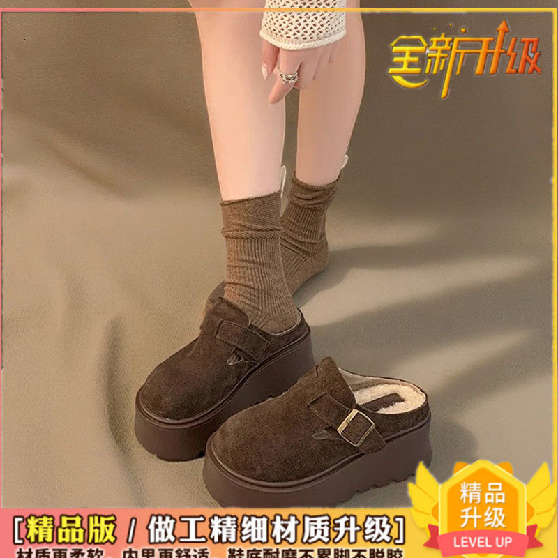 작은 복고풍 높이 8cm 별 스타일 슬리퍼 가을 및 겨울 기모 외부 착용 버켄 신발 두꺼운 단독 면 슬리퍼