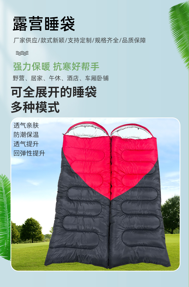 야외 캠핑 봉투 침낭은 더블 침낭 휴대용 성인 캠핑 비상 침낭을 연결할 수 있습니다