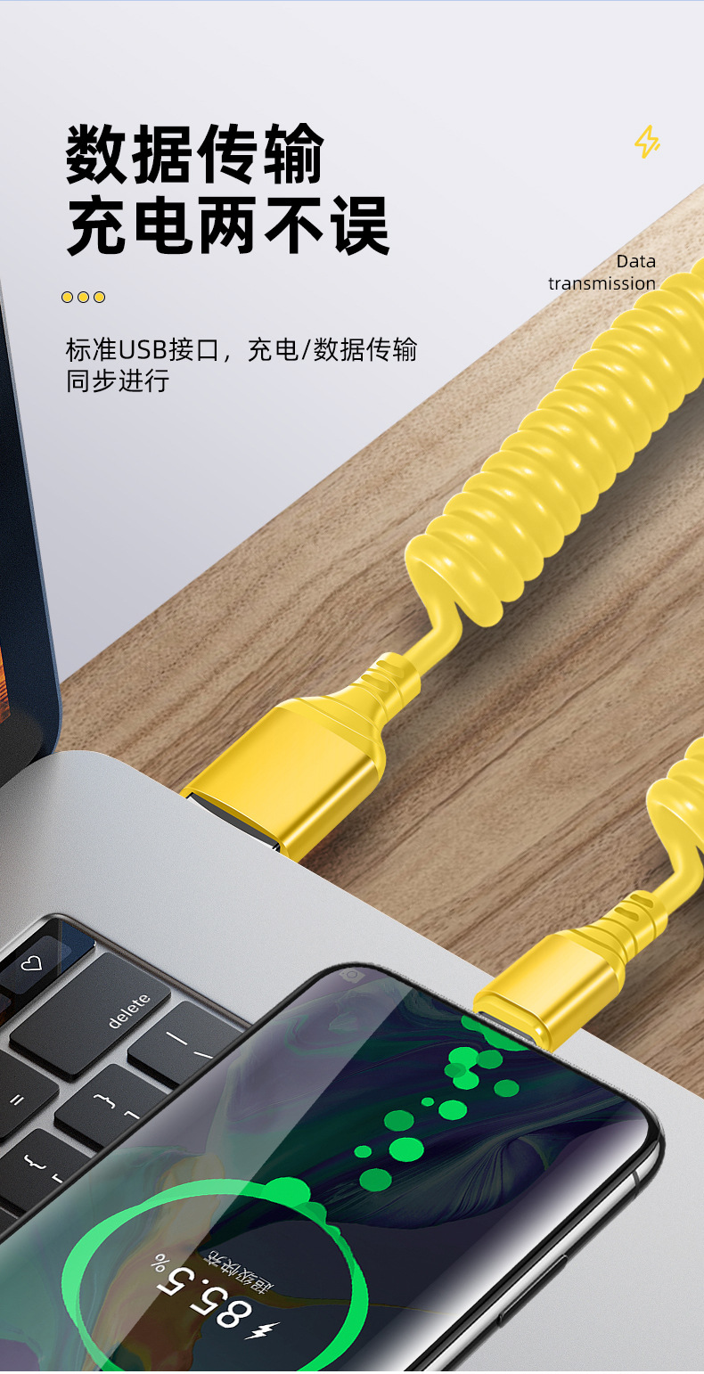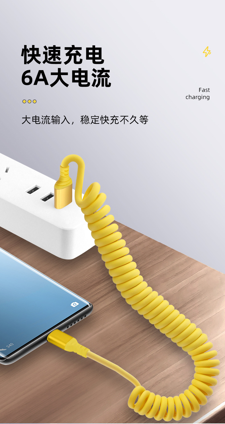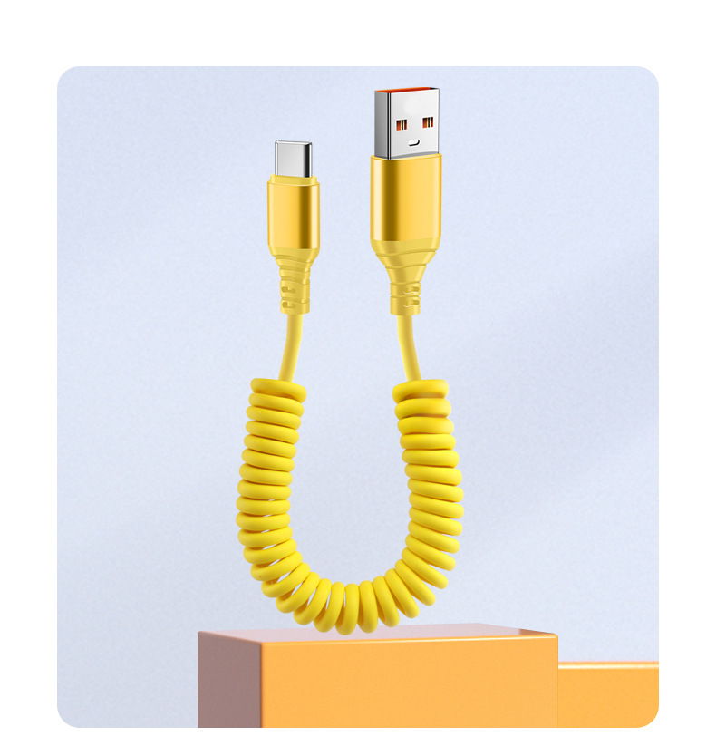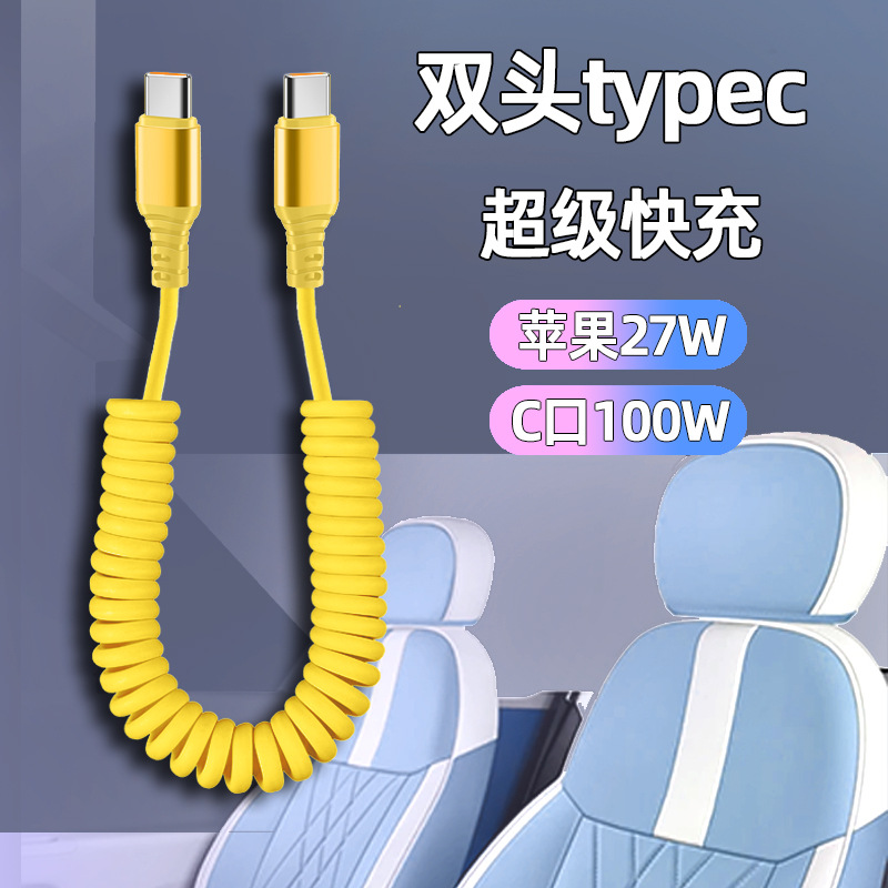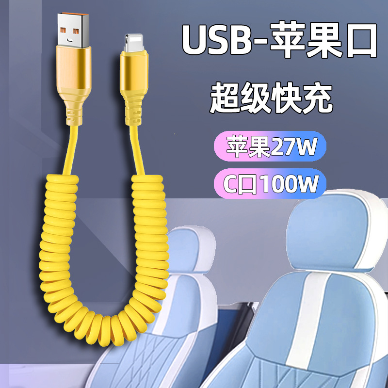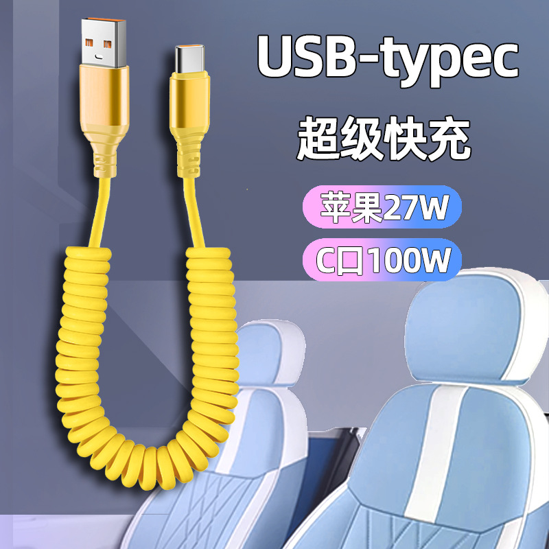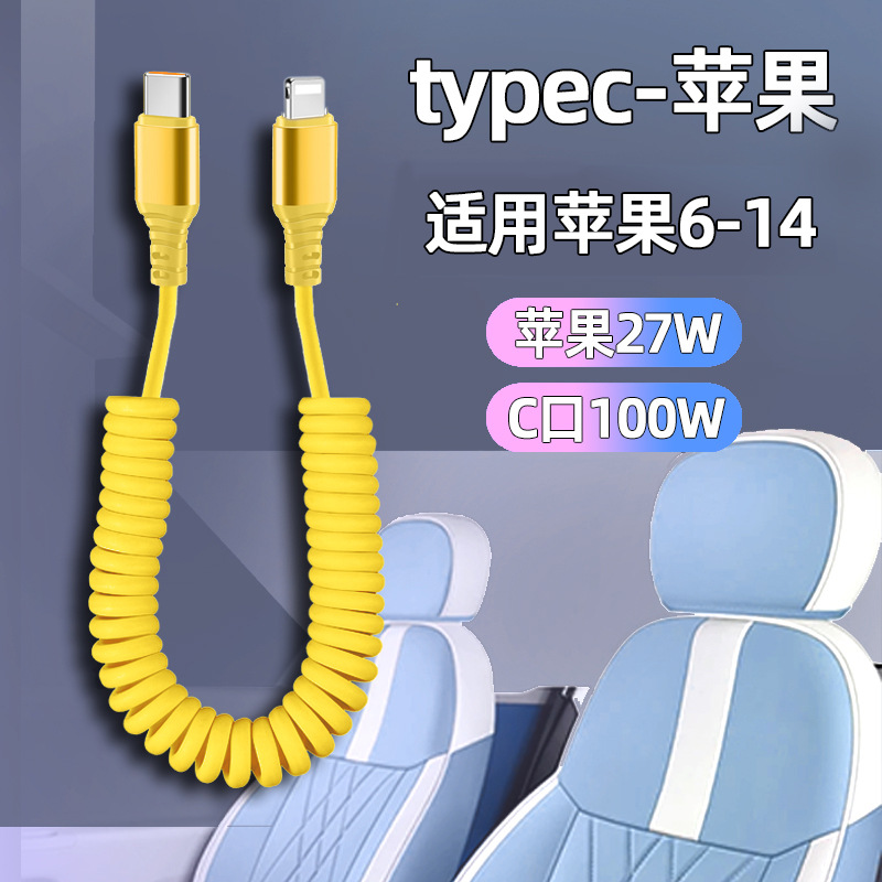 자동차 스프링 타입-C 데이터 케이블 애플 캐팔 빠른 충전 케이블카 스토리지 텔레스코픽