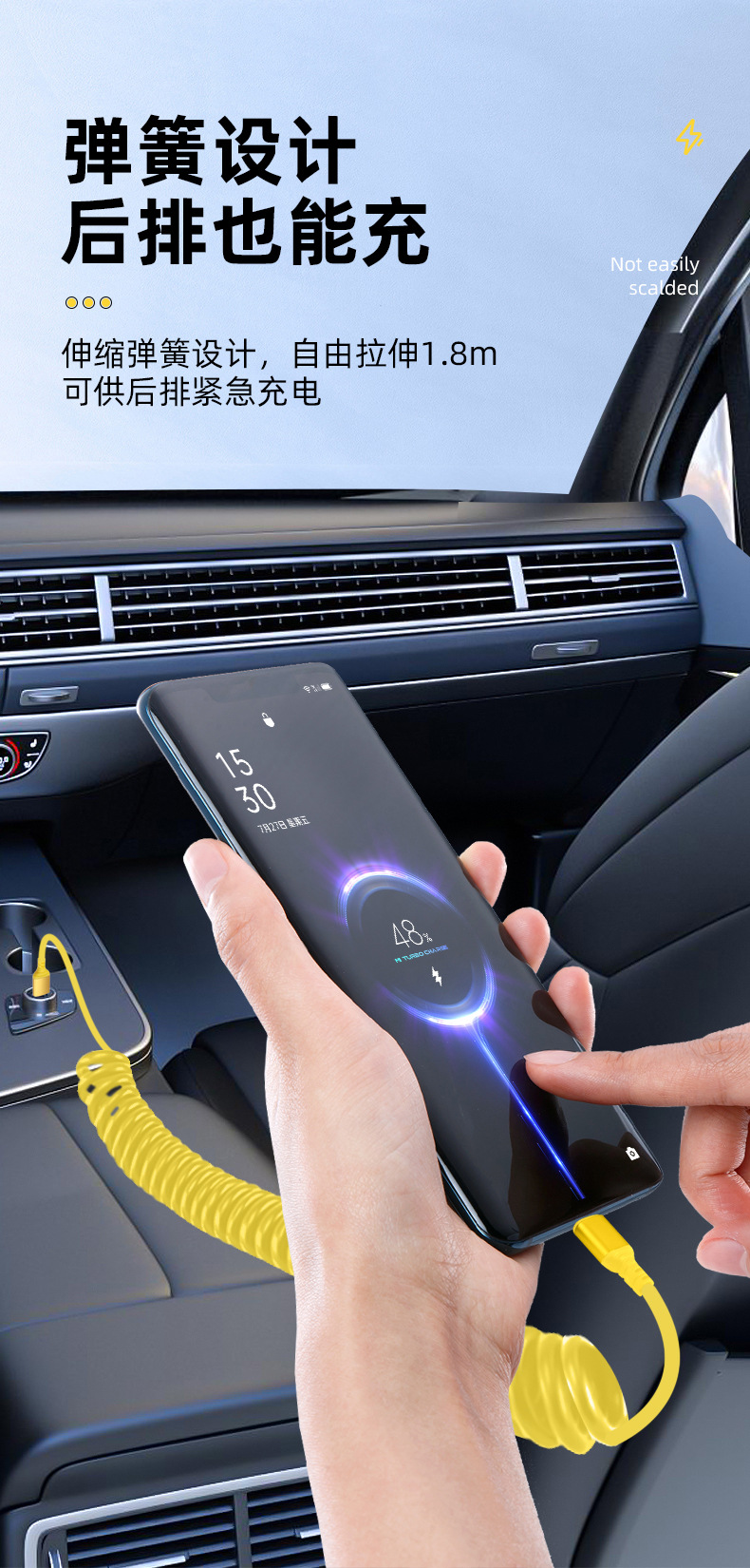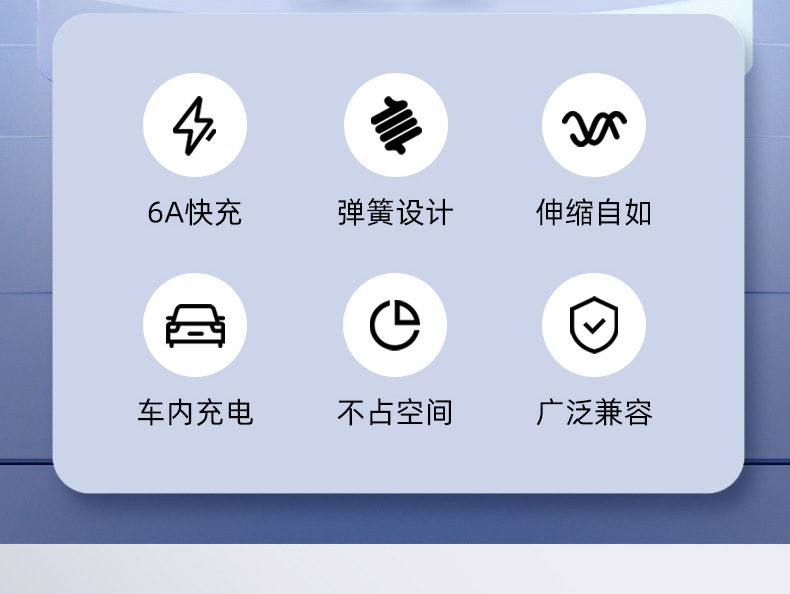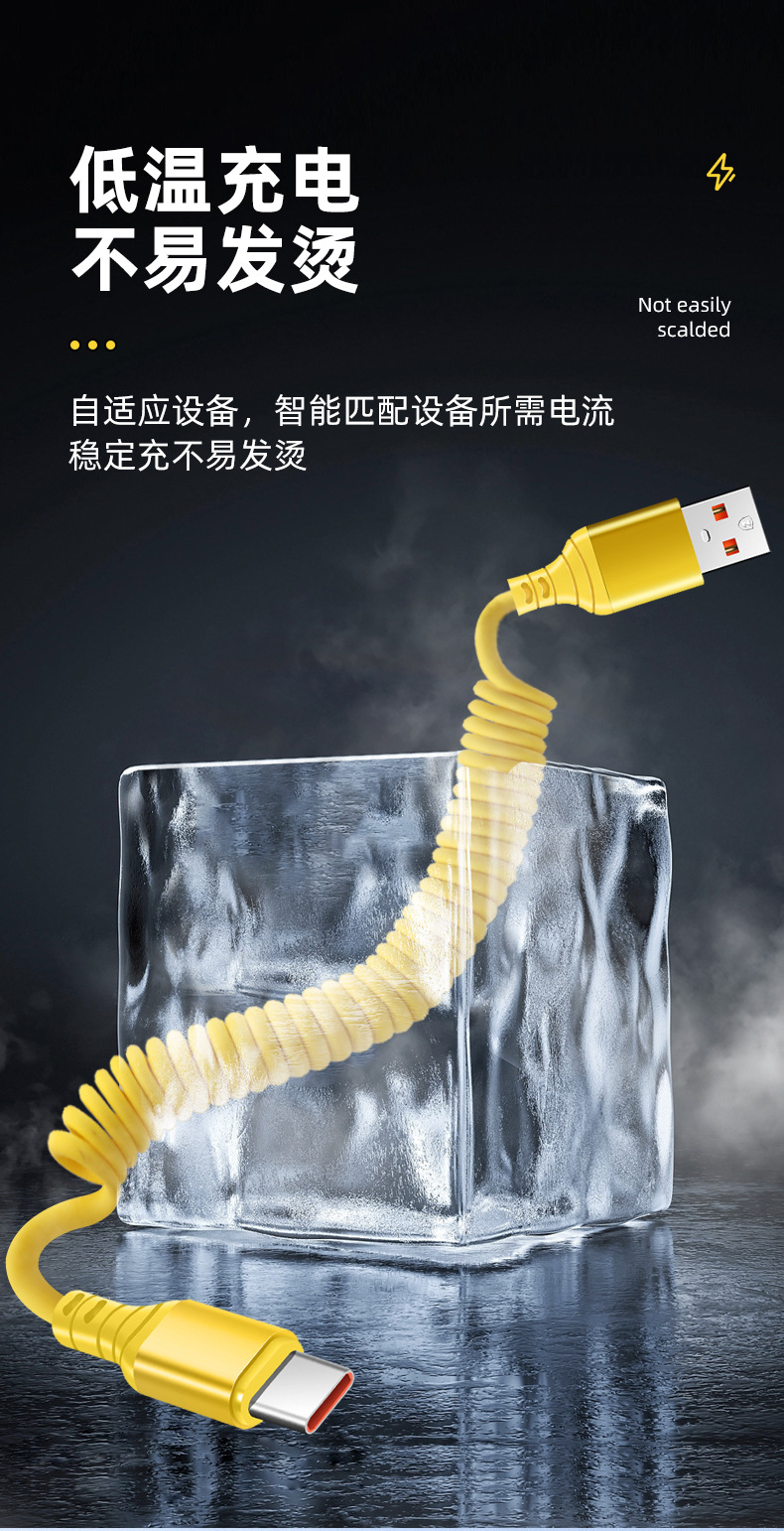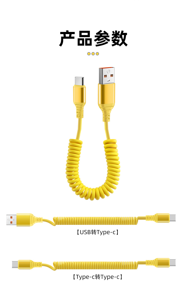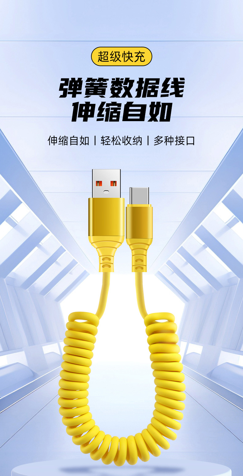 자동차 스프링 타입-C 데이터 케이블 애플 캐팔 빠른 충전 케이블카 스토리지 텔레스코픽