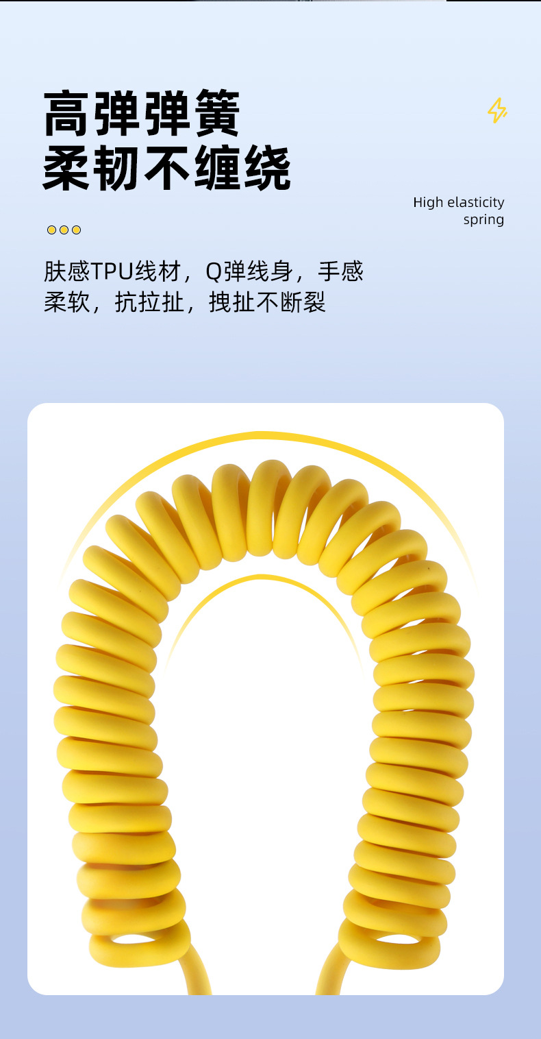 자동차 스프링 타입-C 데이터 케이블 애플 캐팔 빠른 충전 케이블카 스토리지 텔레스코픽스토어 가기