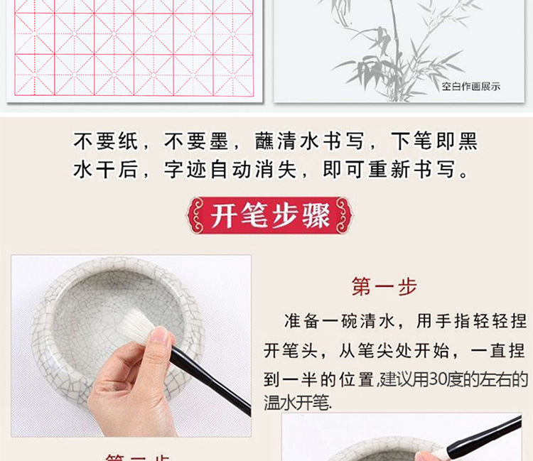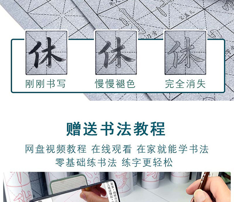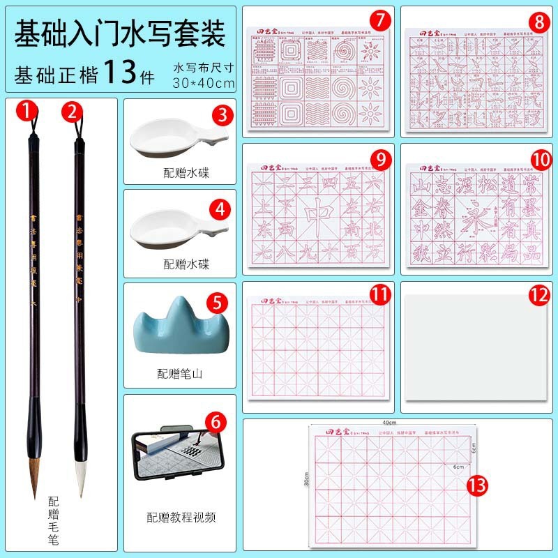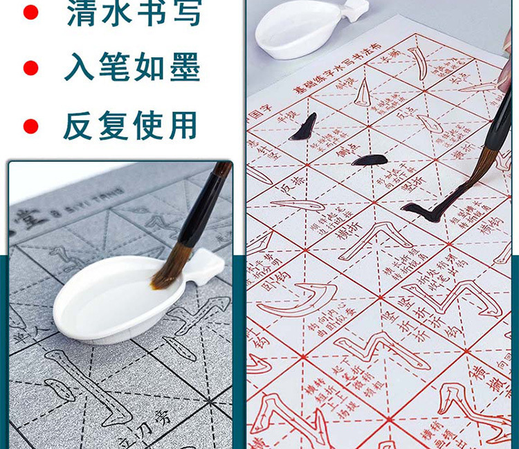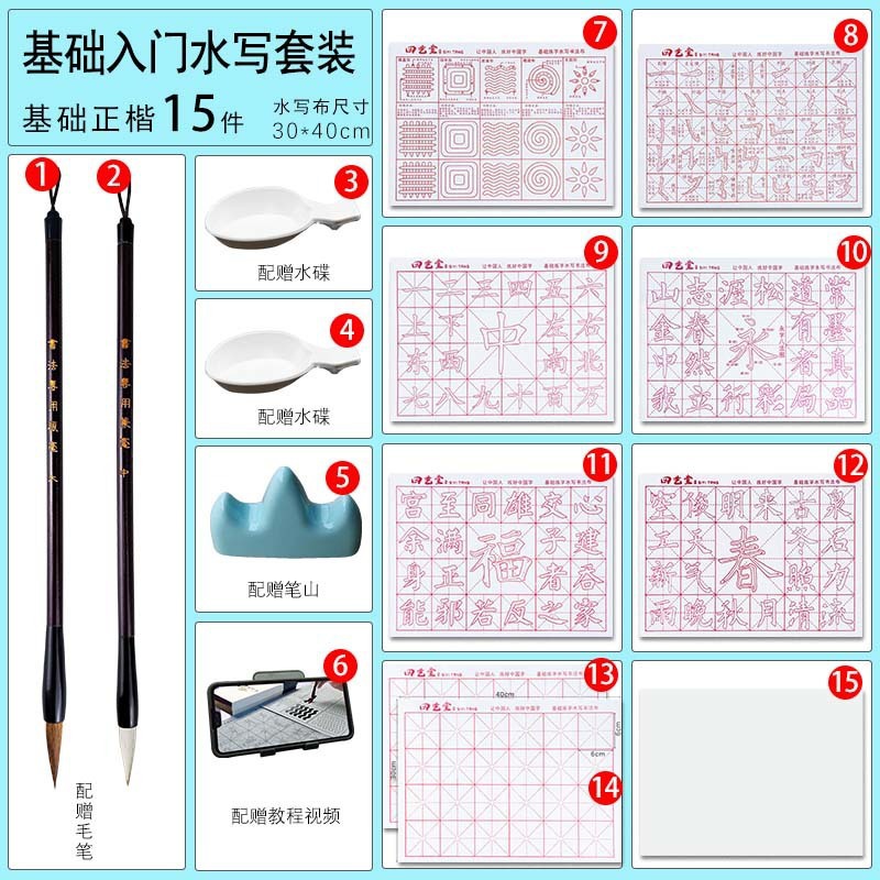 물 쓰기 서예 천 브러시 서예 연습 스티커 어린이 쌀 캐릭터 학생 초보자 세트 재사용 공장스토어 가기
