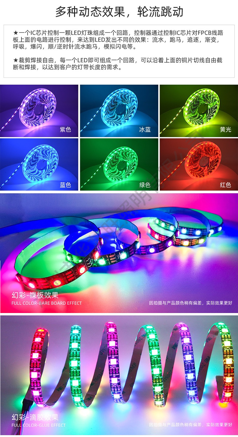 5050 내장 IC2812 매직 라이트 5V60 램프 10mm7mm 단일 포인트 단일 제어 프로그래밍 가능 USB 마키 스트립