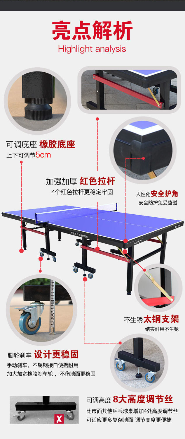 탁구 탁구 탁구 탁구 탁구 탁구 테이블 실내 접는 가구 표준 바퀴 기병스토어 가기