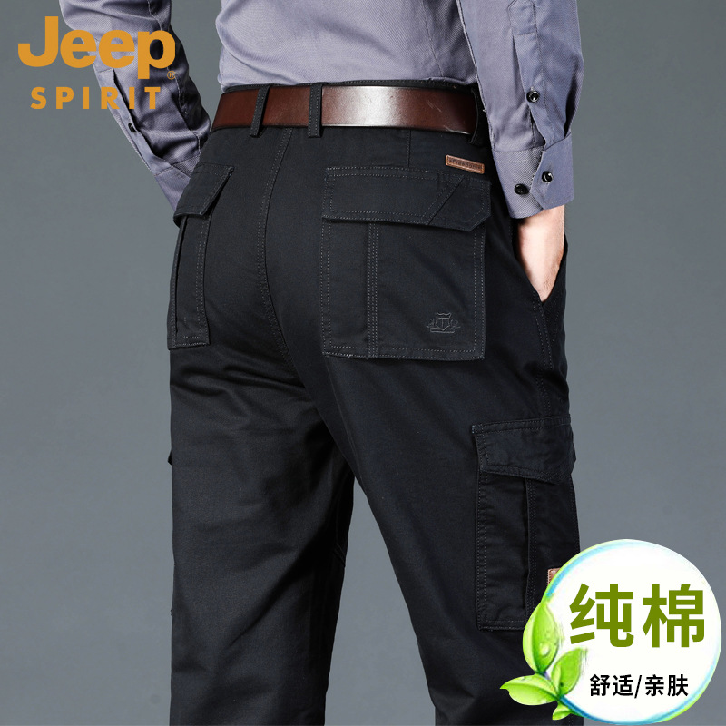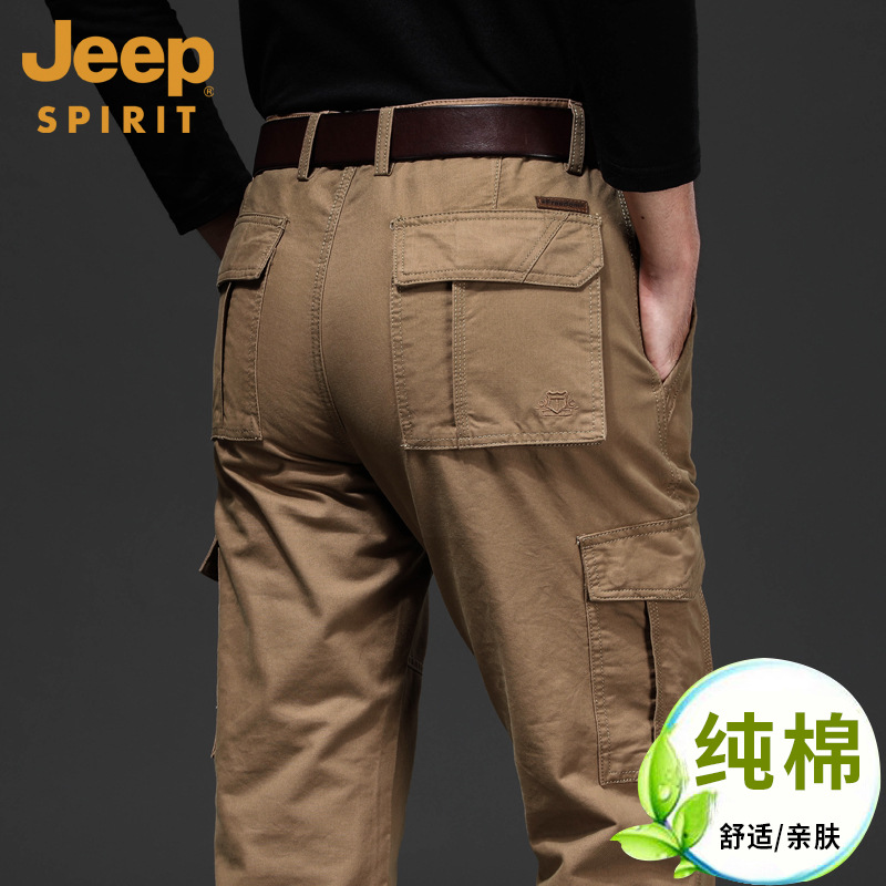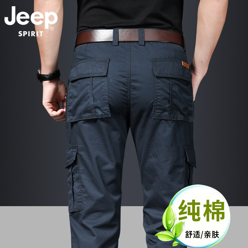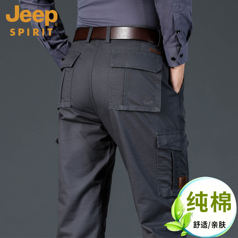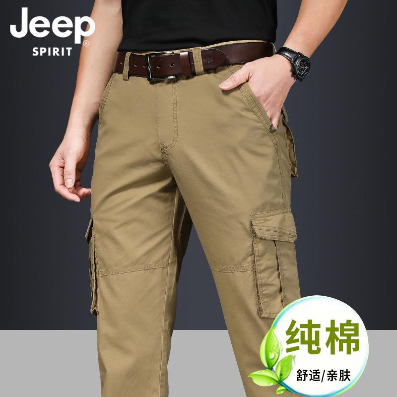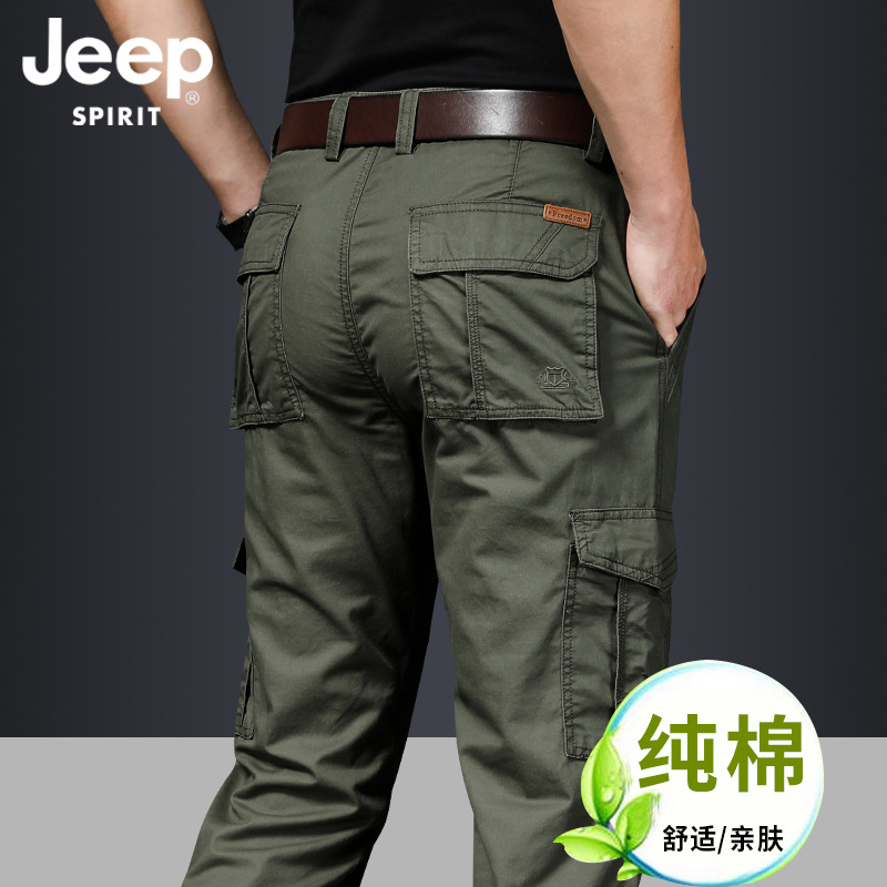 지프 스피릿 멀티 백 캐주얼 바지 남자의 봄과 여름 얇은 작업 바지 봄과 가을 두꺼운 면 느슨한 플러스 사이즈