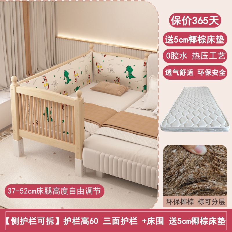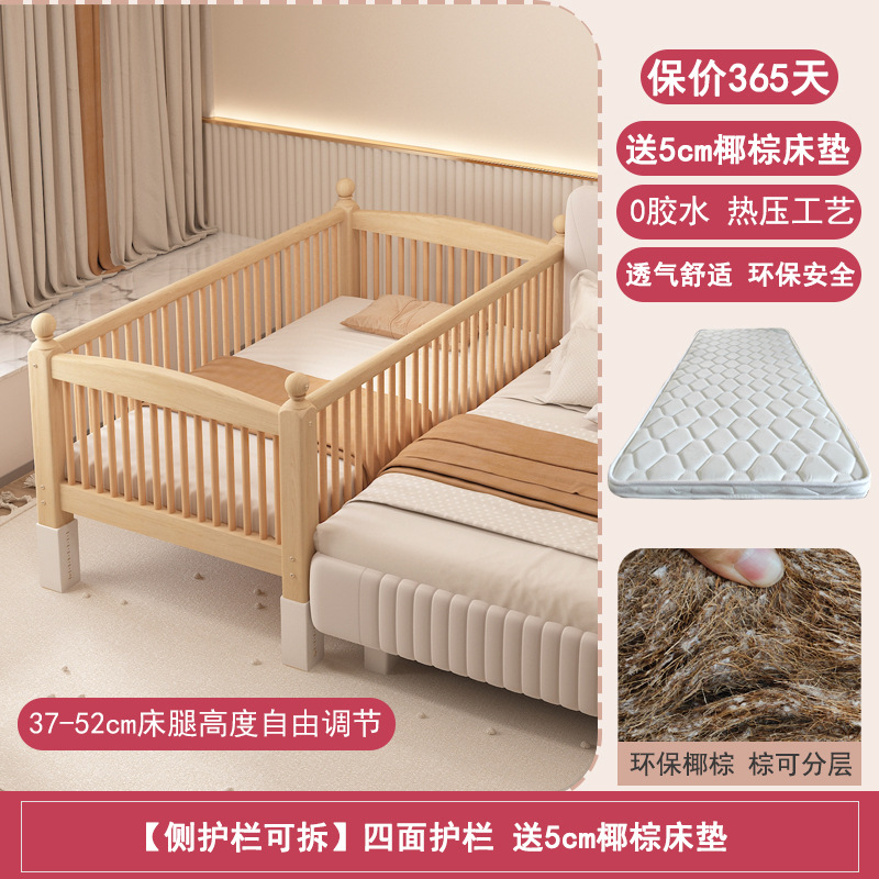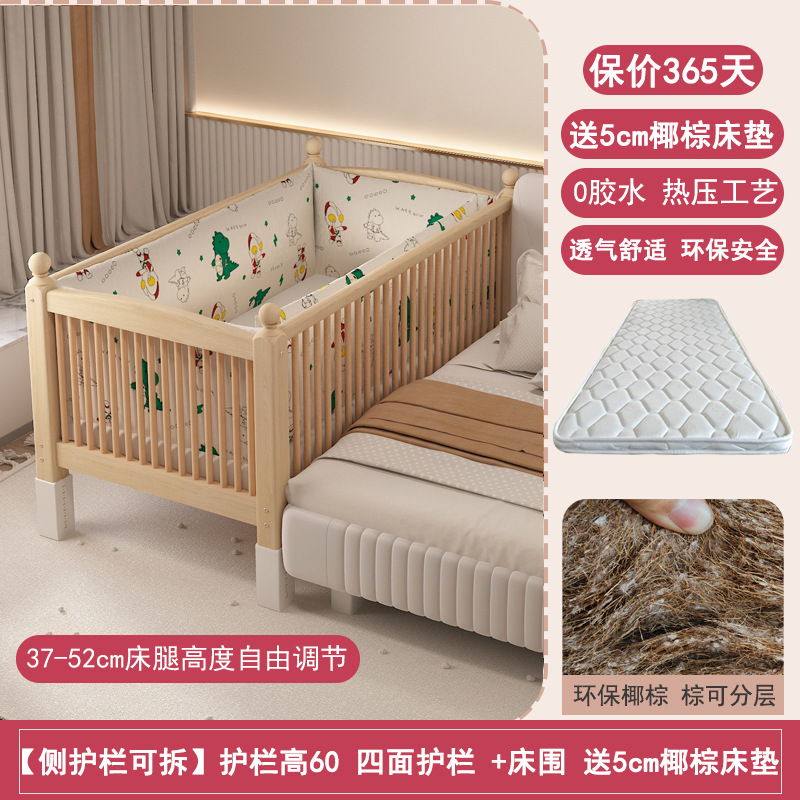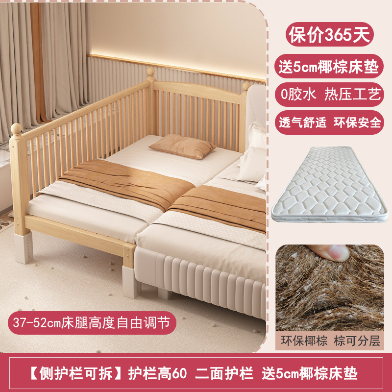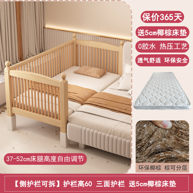 • 난간 높이 60cm, 4면 난간 + 침대 옆, 5cm 코코넛 야자 매트리스 포함(15단계 조절)