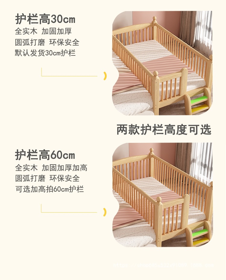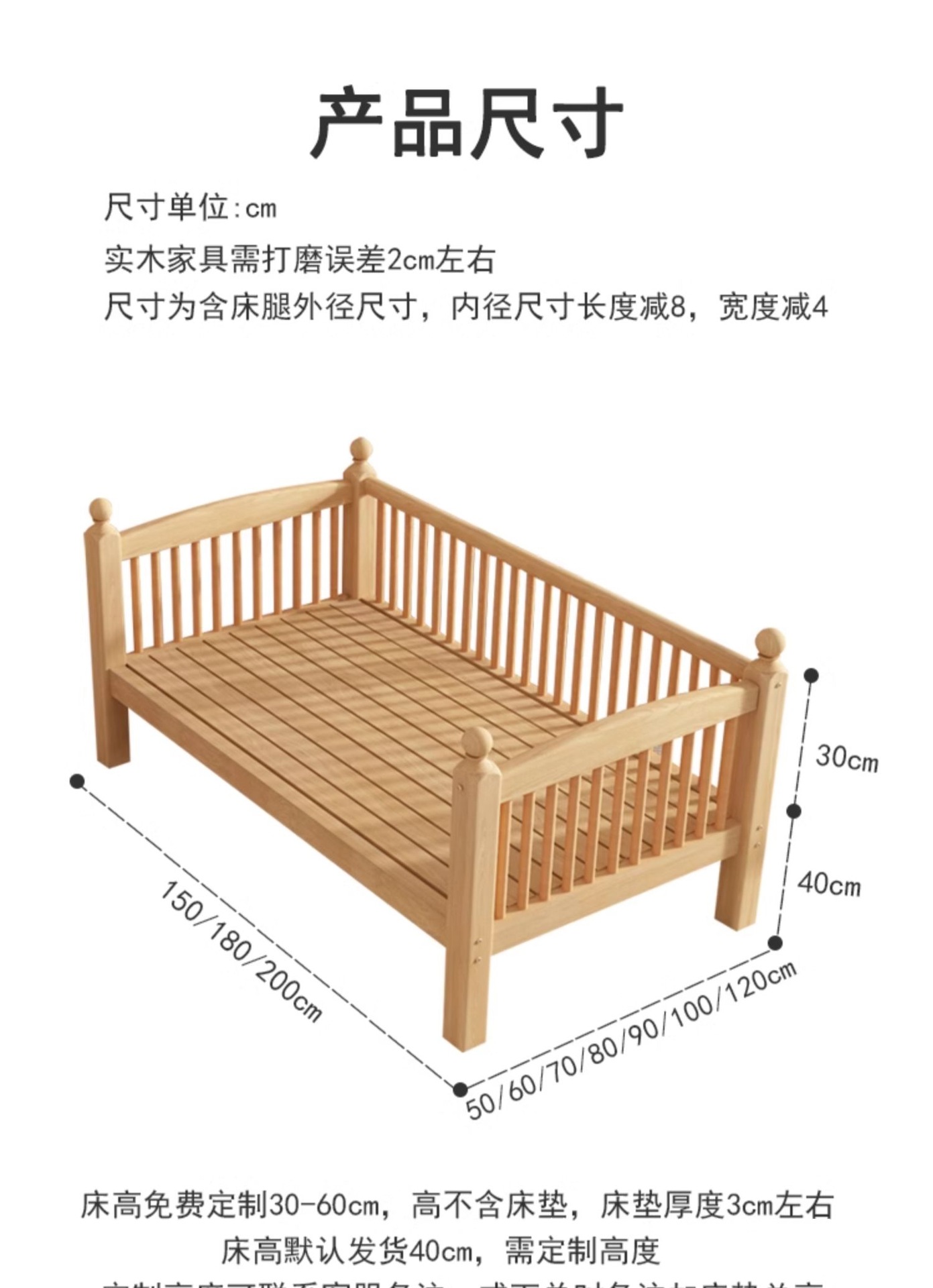 • 난간 높이 60cm, 4면 난간 + 침대 옆면, 무료 3cm 매트리스(15단계 조절)