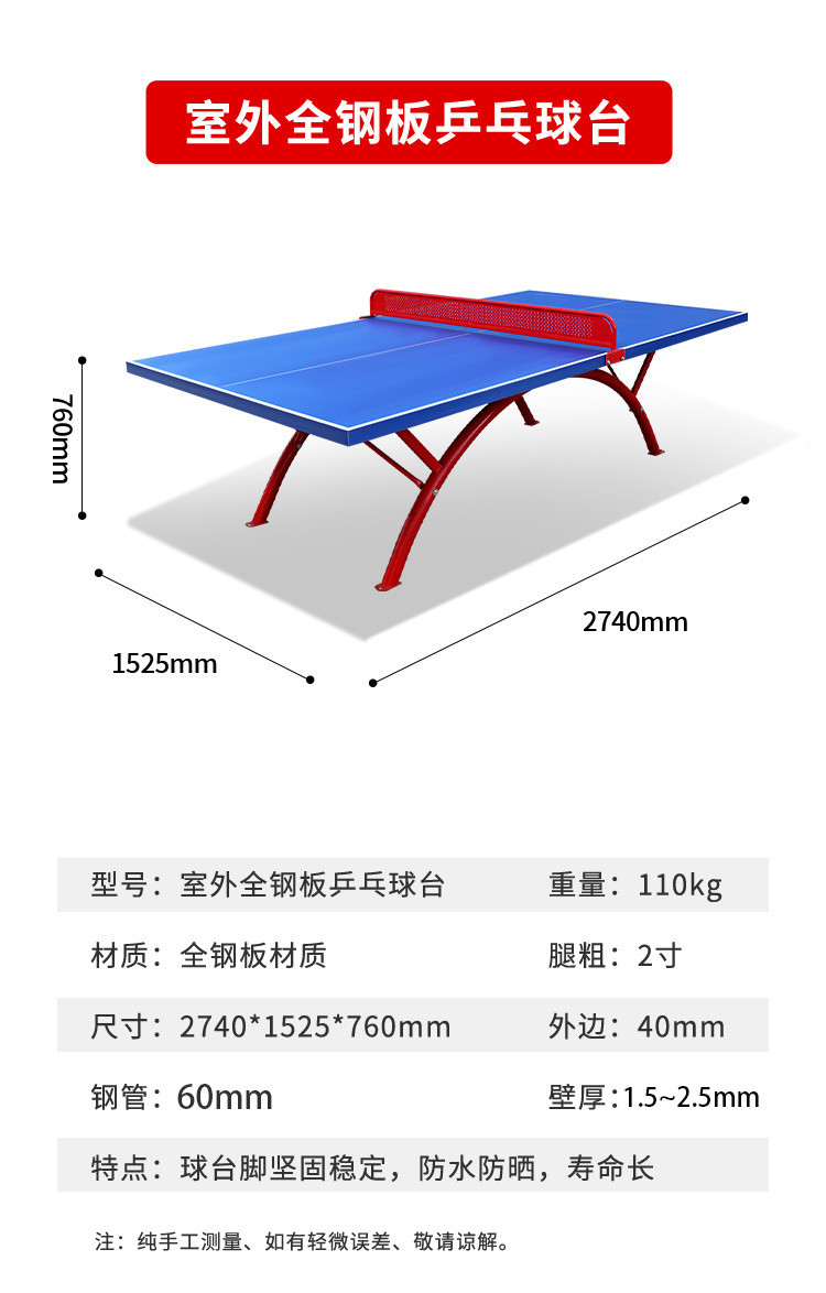 • 국가 표준 새로운 강화 야외 탁구대 + 선물 가방
