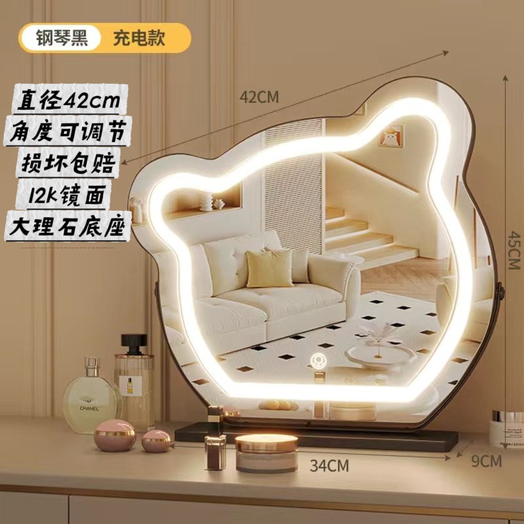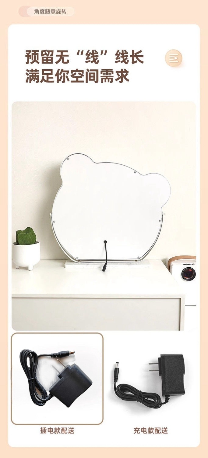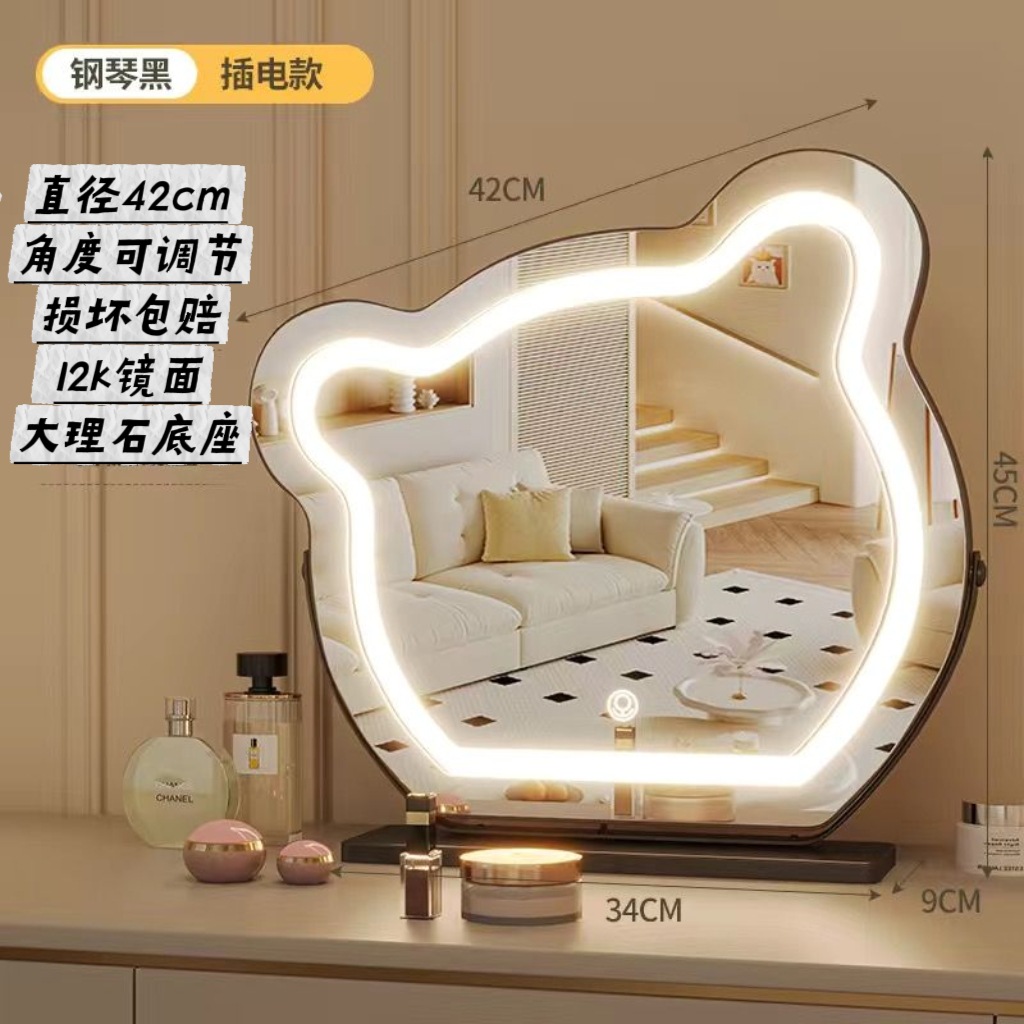 LED 메이크업 미러 새로운 곰 조정 데스크탑 회전 터치 업 뷰티 메이크업 침실 기숙사 드레서 거울