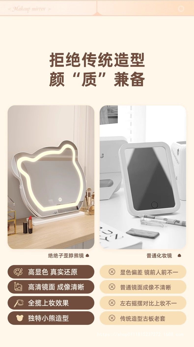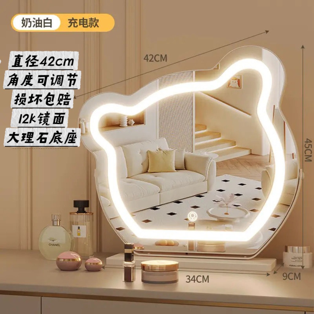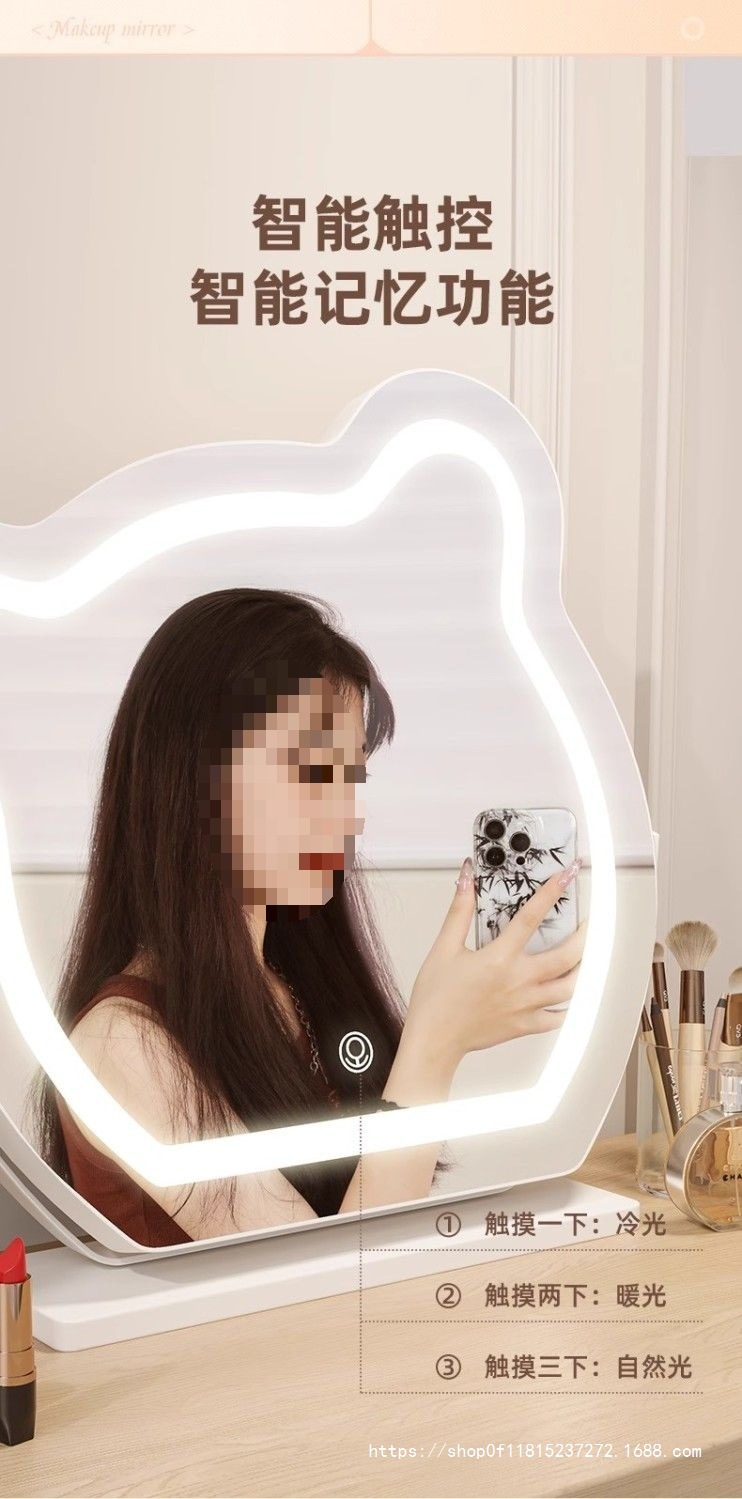 LED 메이크업 미러 새로운 곰 조정 데스크탑 회전 터치 업 뷰티 메이크업 침실 기숙사 드레서 거울