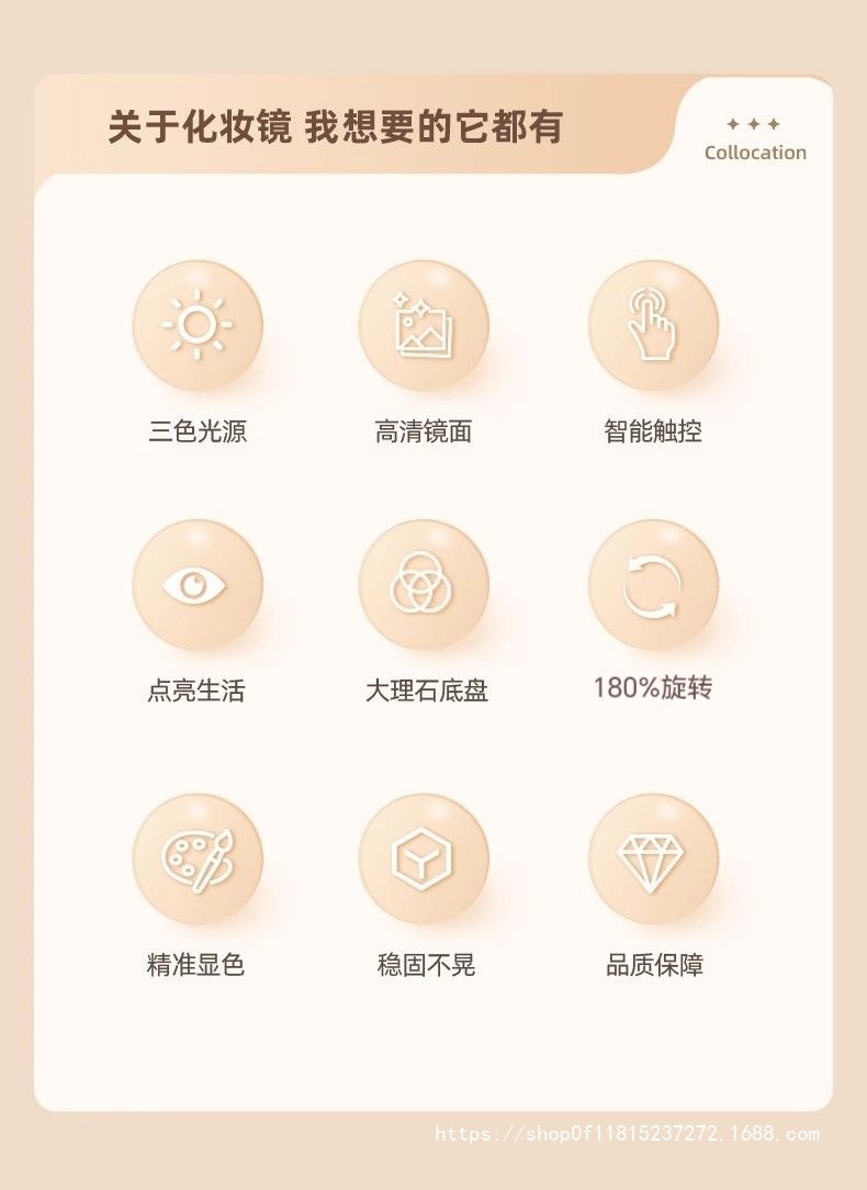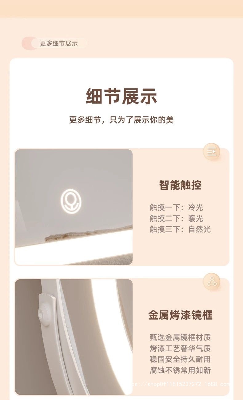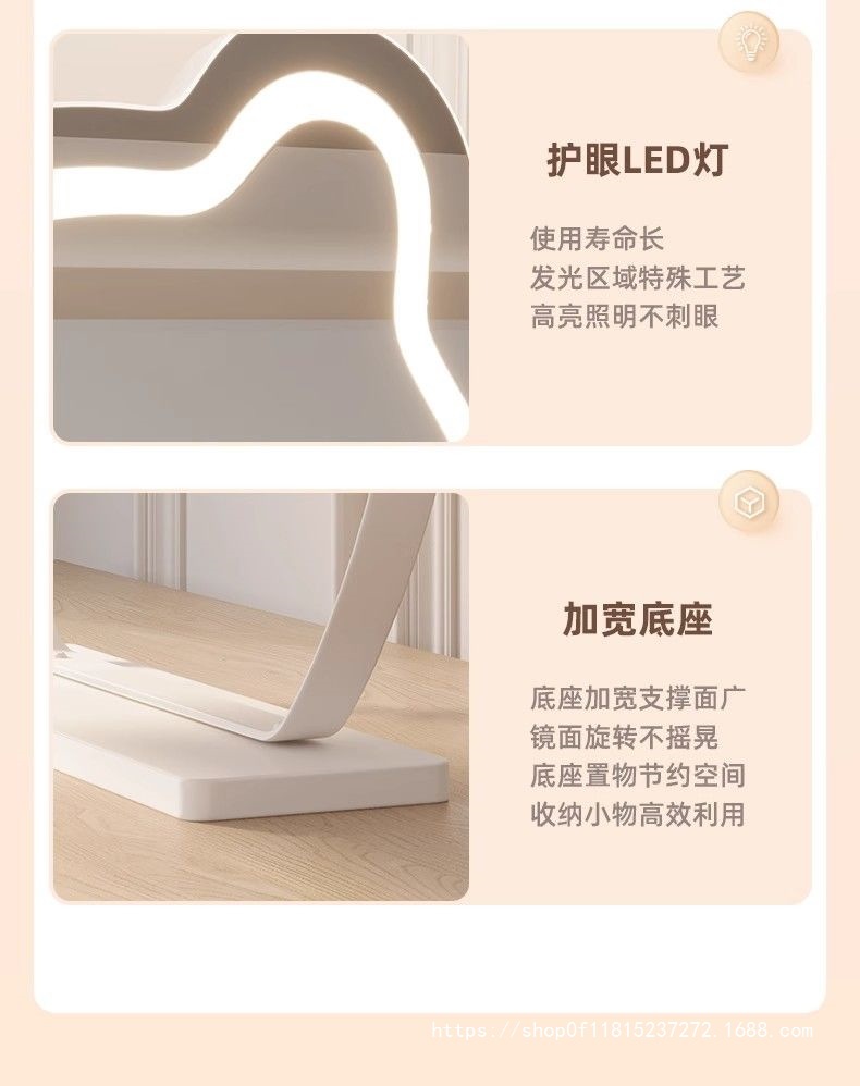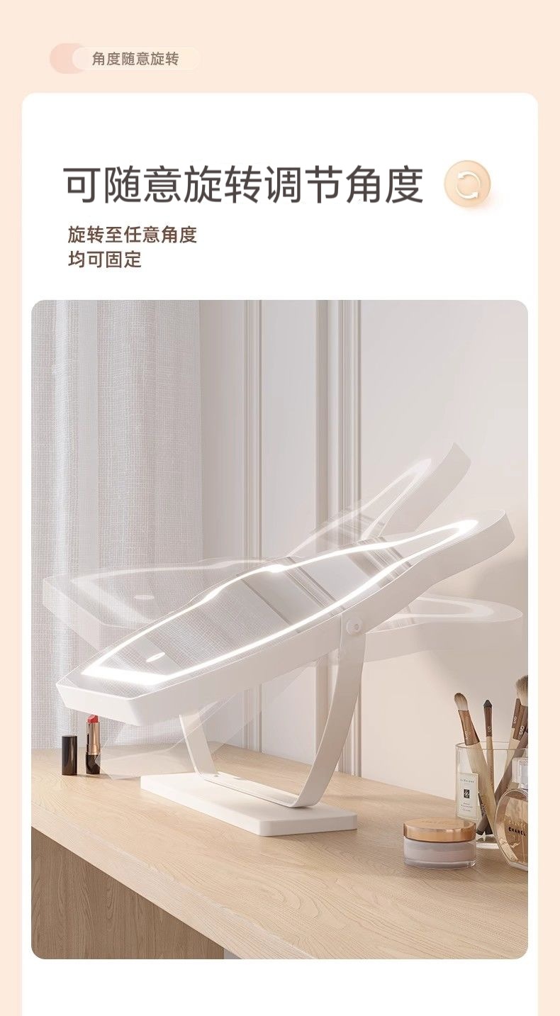 • 화이트 베이스 + 반원형 거울 + 3색 조절 조명 + 회전형(충전식 및 연결형)