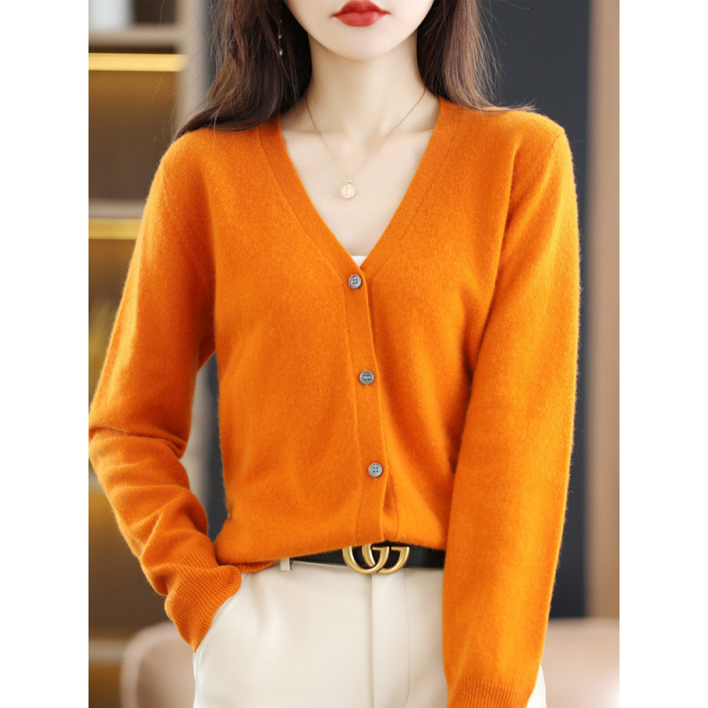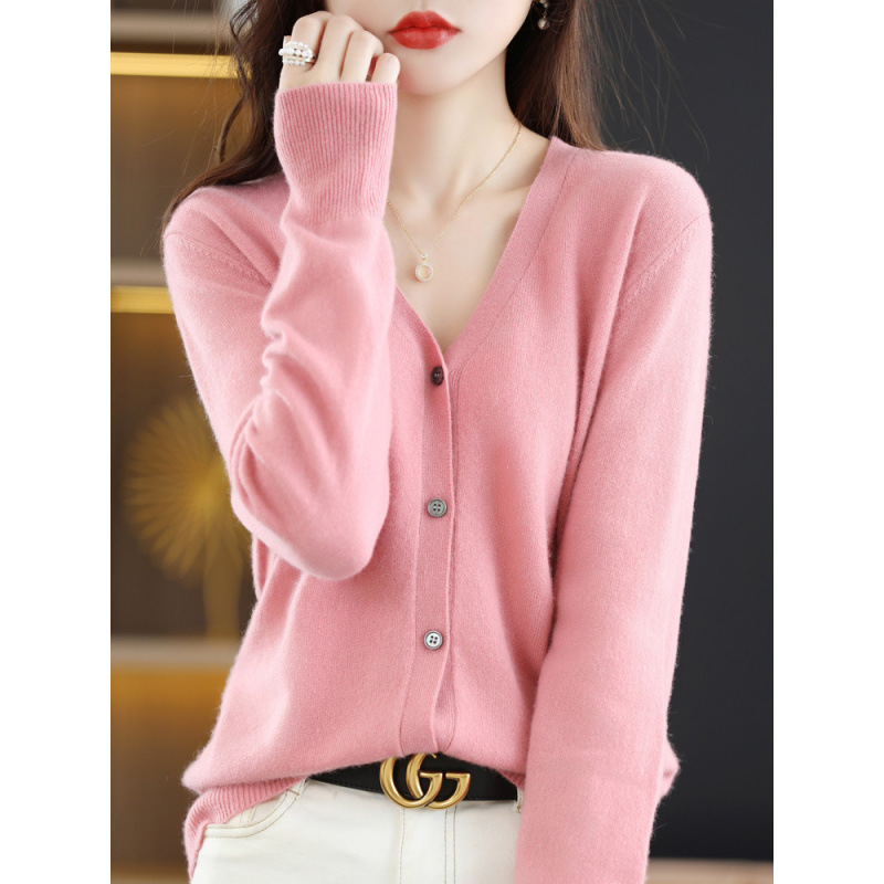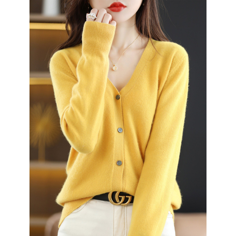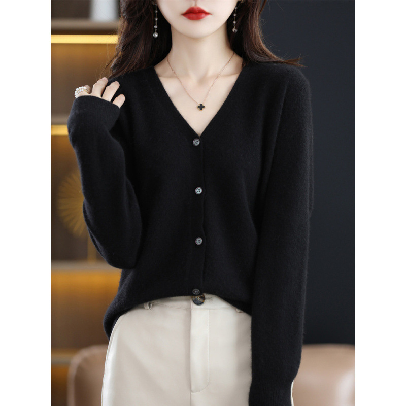 양모 블렌드 2024 가을 겨울 여성의 새로운 느슨한 V-목 단색 짧은 탑 니트 카디건 스웨터 재킷스토어 가기