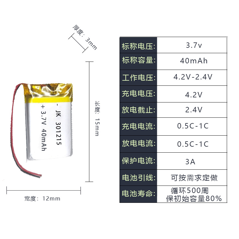 공장 직접 공급 폴리머 리튬 배터리 301215 3.7V35mAh 무선 블루투스 헤드셋 보청기 배터리