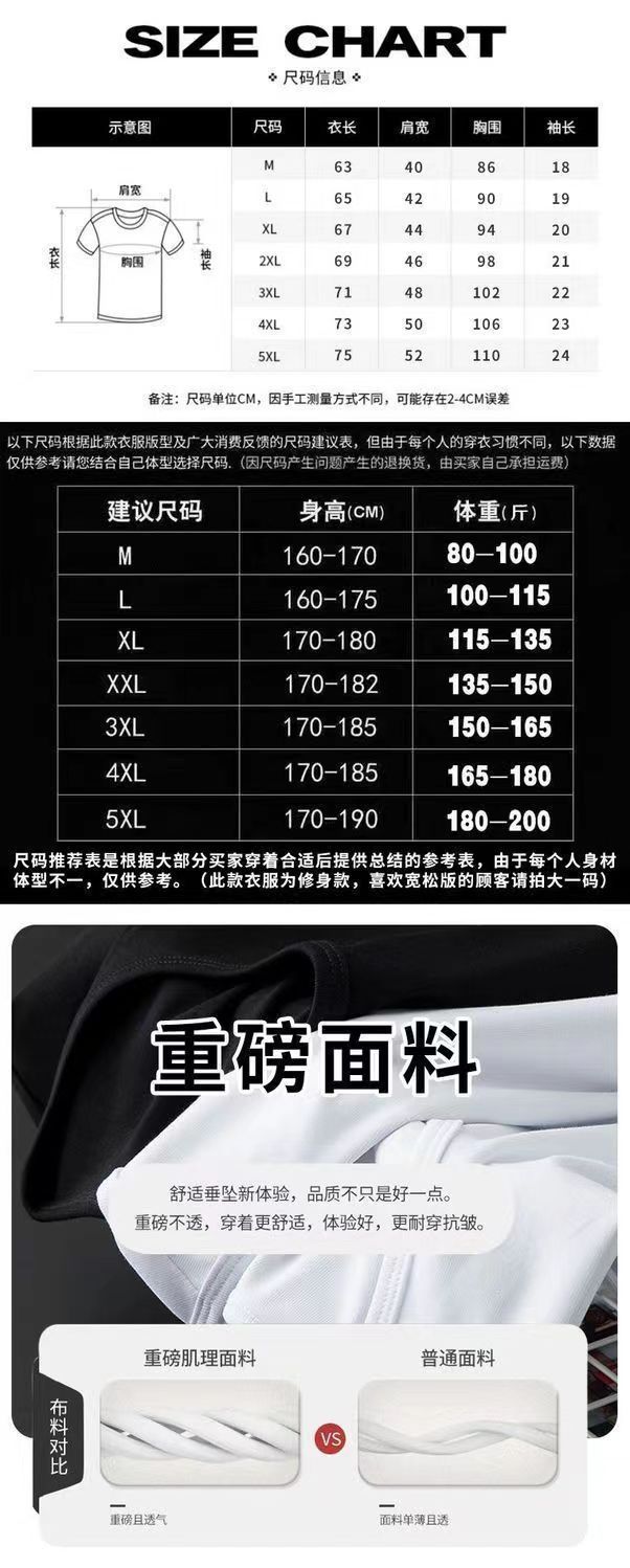 국경 180g 순수한 흰색 반팔 티셔츠 남성용 느슨한 캐주얼 불투명 셔츠 여름 재킷 공장 아울렛스토어 가기