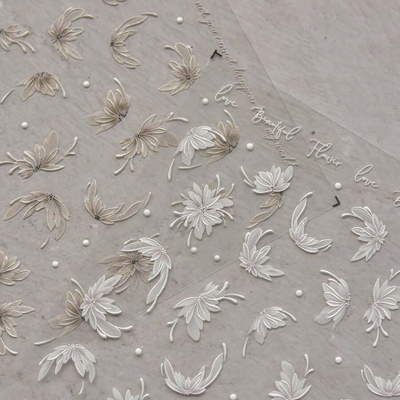 우아한 제국 달리아 네일 아트 스티커 프랑스 화이트 플라워 그룹 작은 신선한 반투명 꽃 우아한 네일 아트 스티커