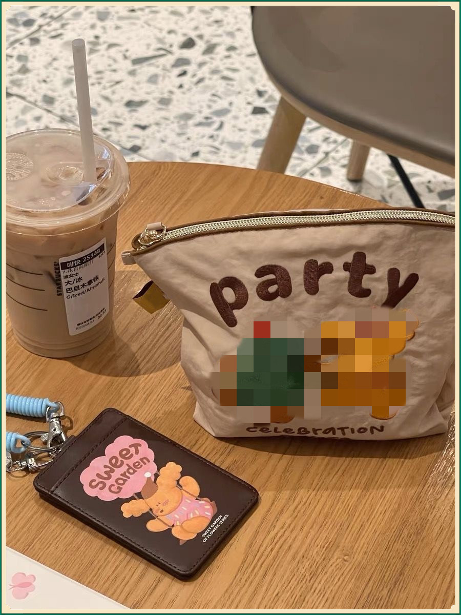 • 얇은 만화 곰 자수 화장품 가방(내부 포켓 없음)