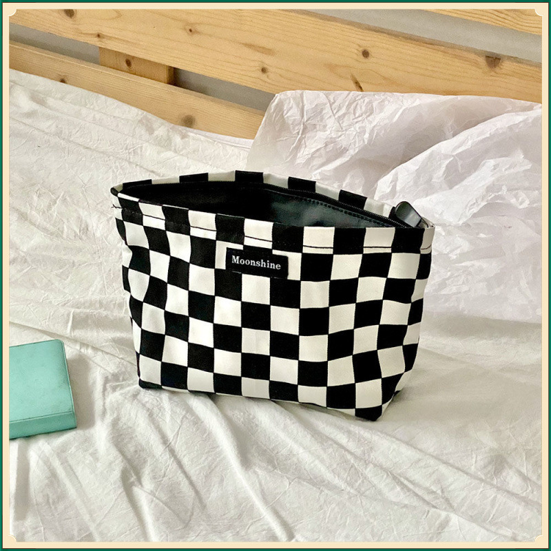 • 만화 흑백 격자 무늬 화장품 가방