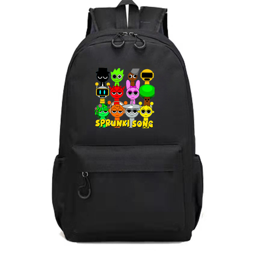 새로운 리듬 상자 sprunki 만화 게임 인쇄 배낭 학생 학교 가방 캔버스 가방 어린이 만화스토어 가기