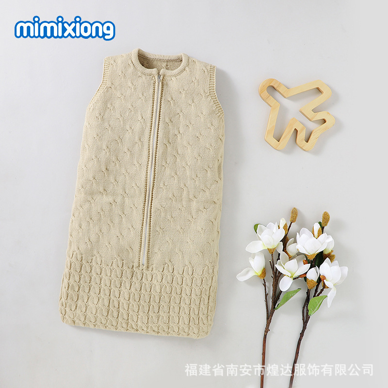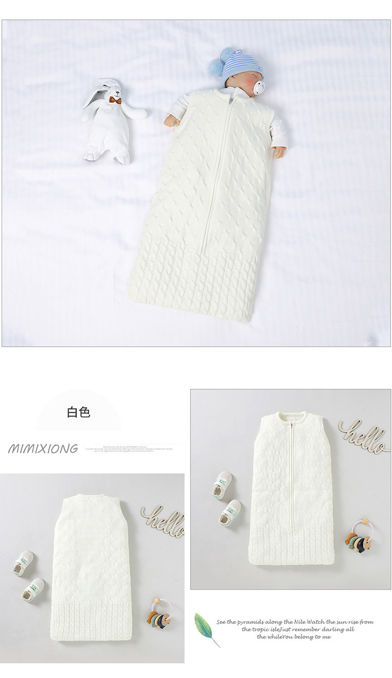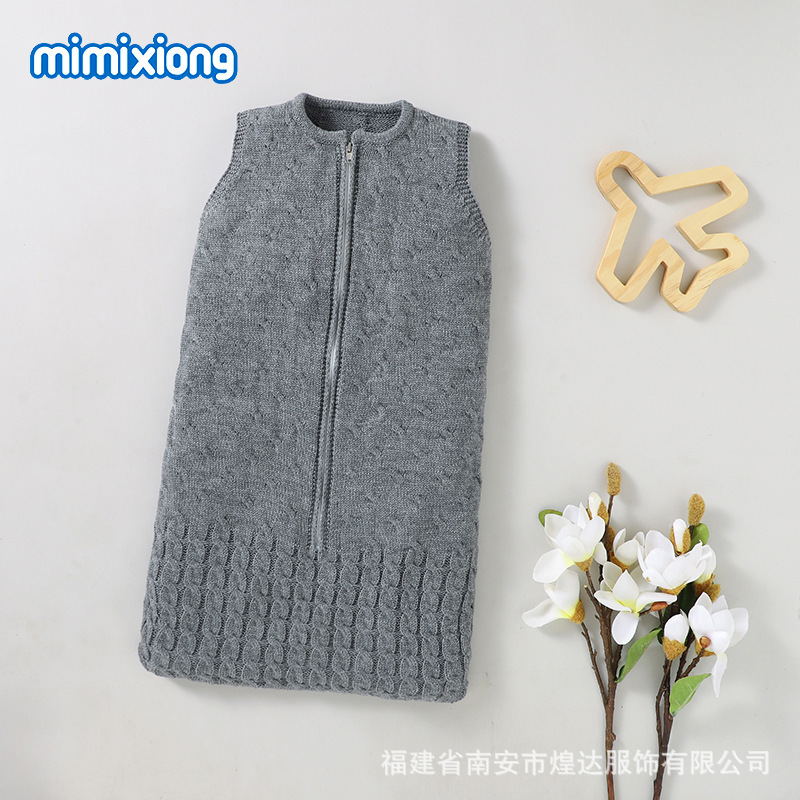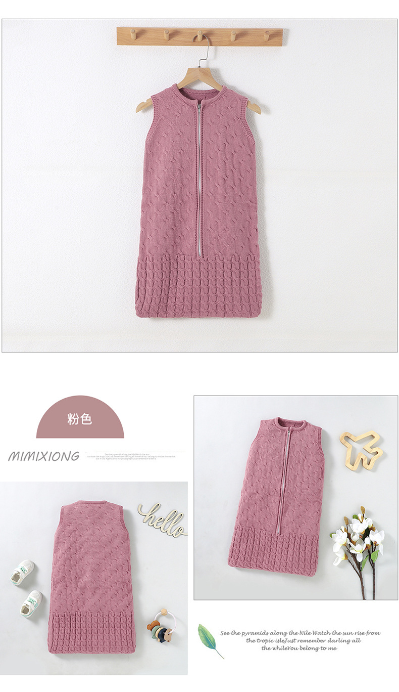 Ins 뜨거운 판매 봄과 가을 새로운 아기 솔리드 컬러 니트 라운드 넥 지퍼 슬리핑 백 슬리브 벨리스 킥 방지 슬리핑 백