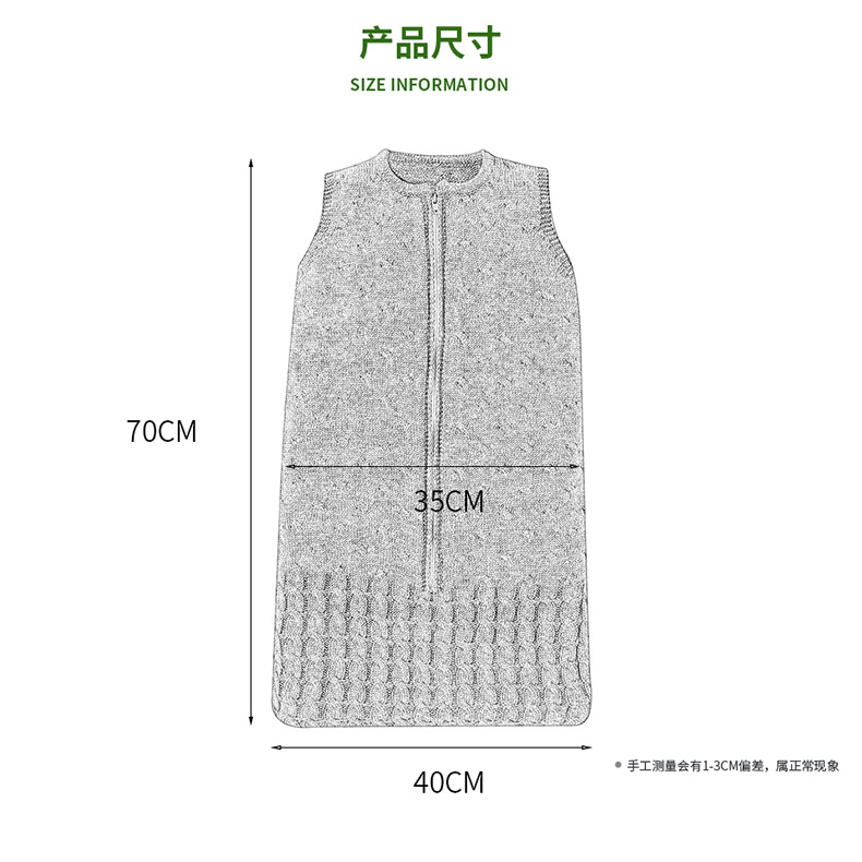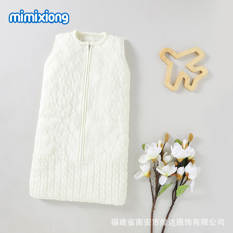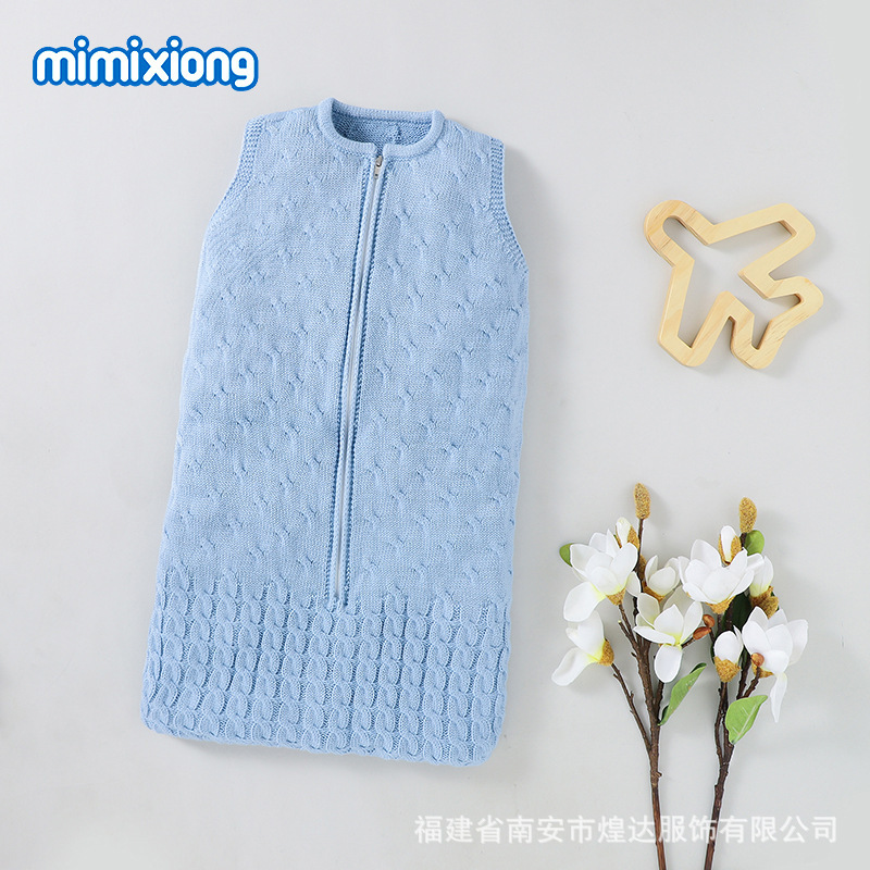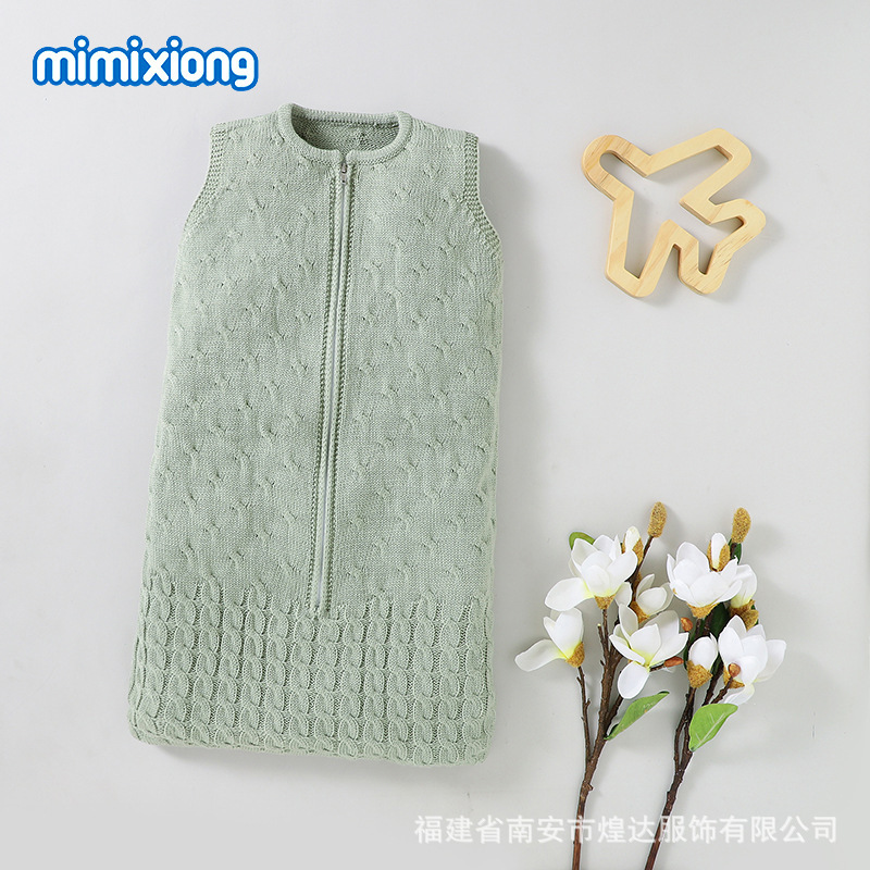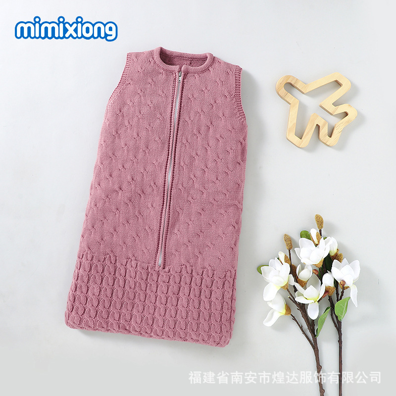 Ins 뜨거운 판매 봄과 가을 새로운 아기 솔리드 컬러 니트 라운드 넥 지퍼 슬리핑 백 슬리브 벨리스 킥 방지 슬리핑 백