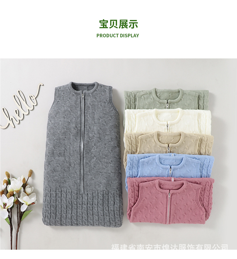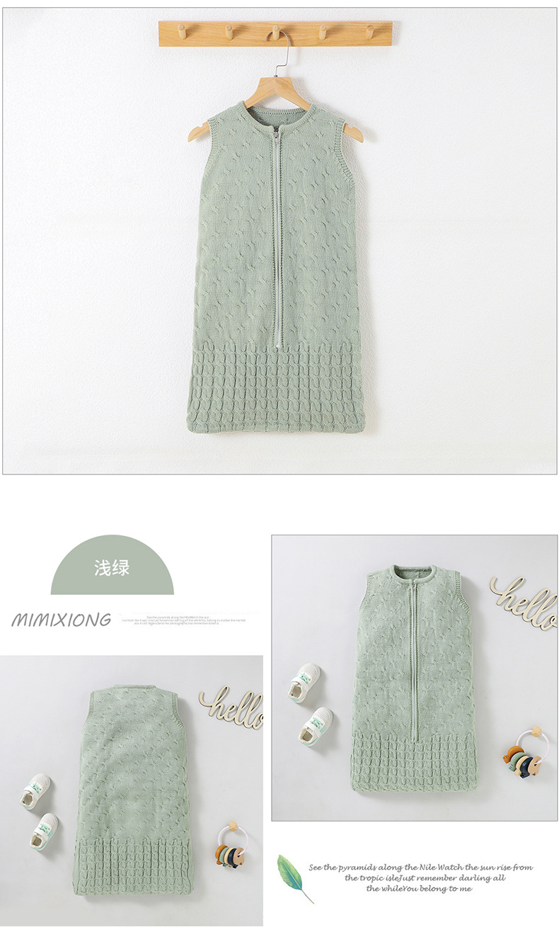 Ins 뜨거운 판매 봄과 가을 새로운 아기 솔리드 컬러 니트 라운드 넥 지퍼 슬리핑 백 슬리브 벨리스 킥 방지 슬리핑 백스토어 가기