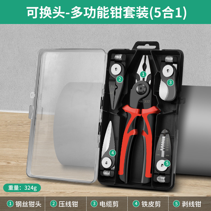 전기 특수 와이어 스트리핑, 와이어 절단 및 와이어 프레스를위한 다기능 헤드 변경 펜치 1 ~ 5 개의 가정용 세트 와이어 플라이어스토어 가기