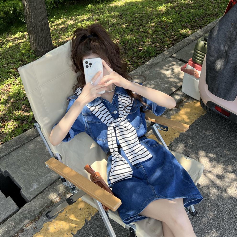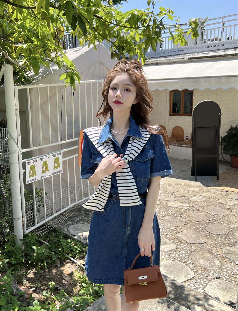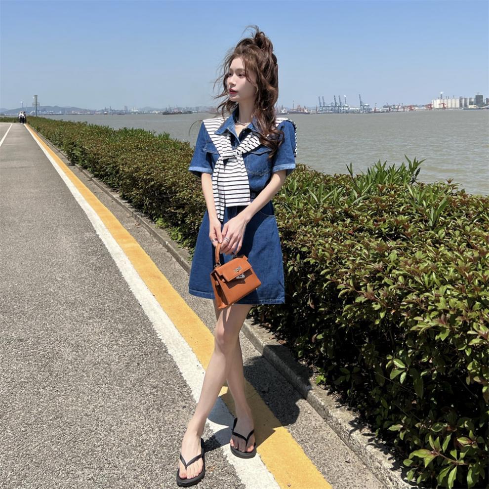 젠틀 베르사유 고대 데님 원피스 프렌치 웨어 플라티코돈 이른 봄 2023 새로운 여성복