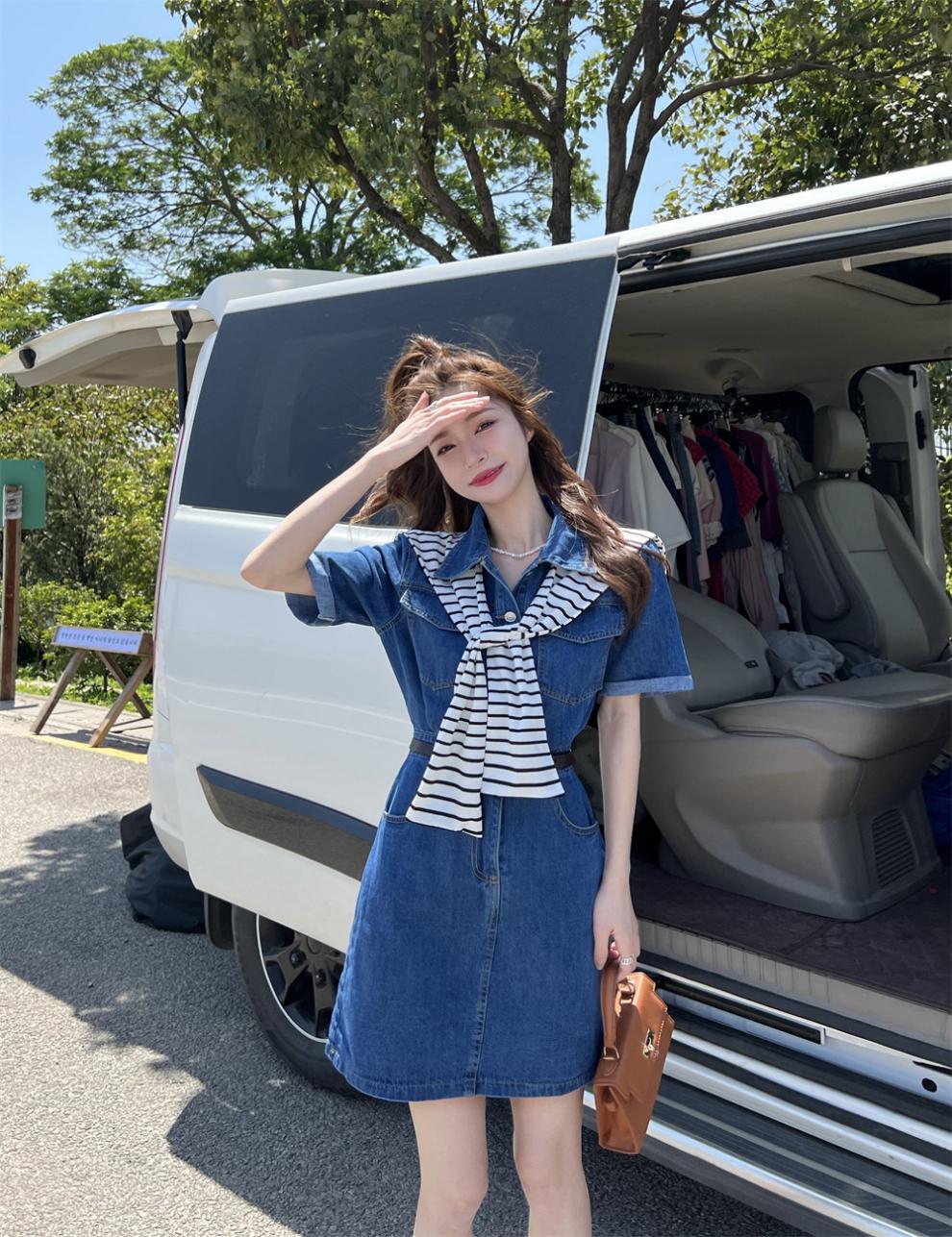 젠틀 베르사유 고대 데님 원피스 프렌치 웨어 플라티코돈 이른 봄 2023 새로운 여성복스토어 가기