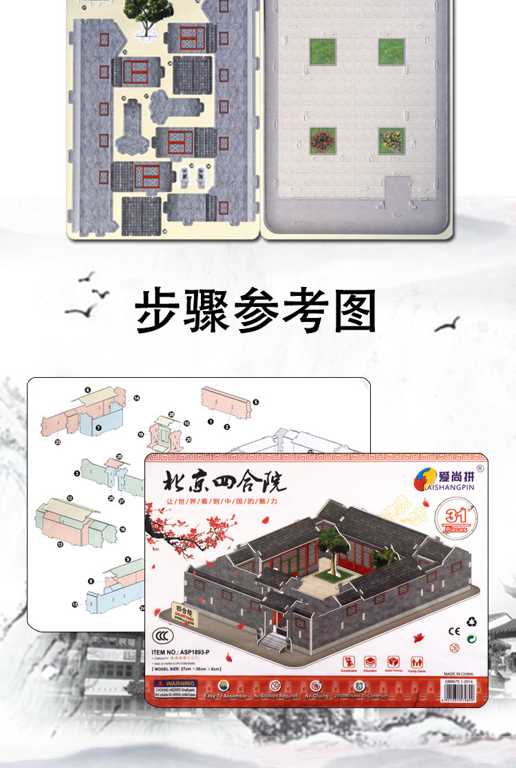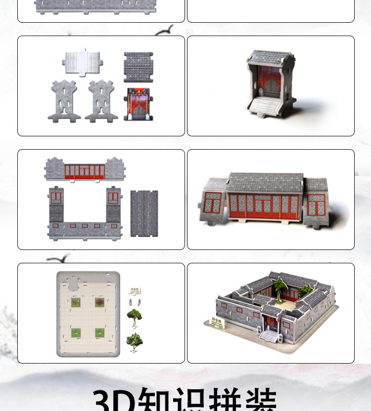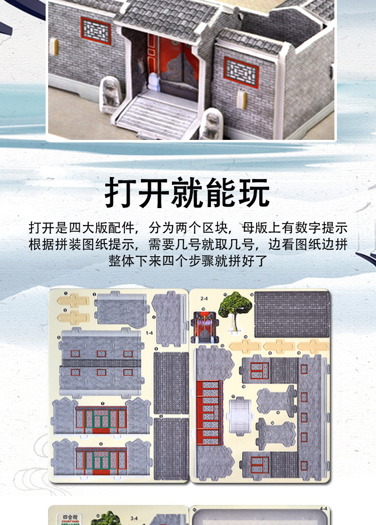 DIY 어린이용 새로운 3D 입체 퍼즐 모델 학교 선물 종이 수제 장난감 중국풍 건축 조립 퍼즐스토어 가기