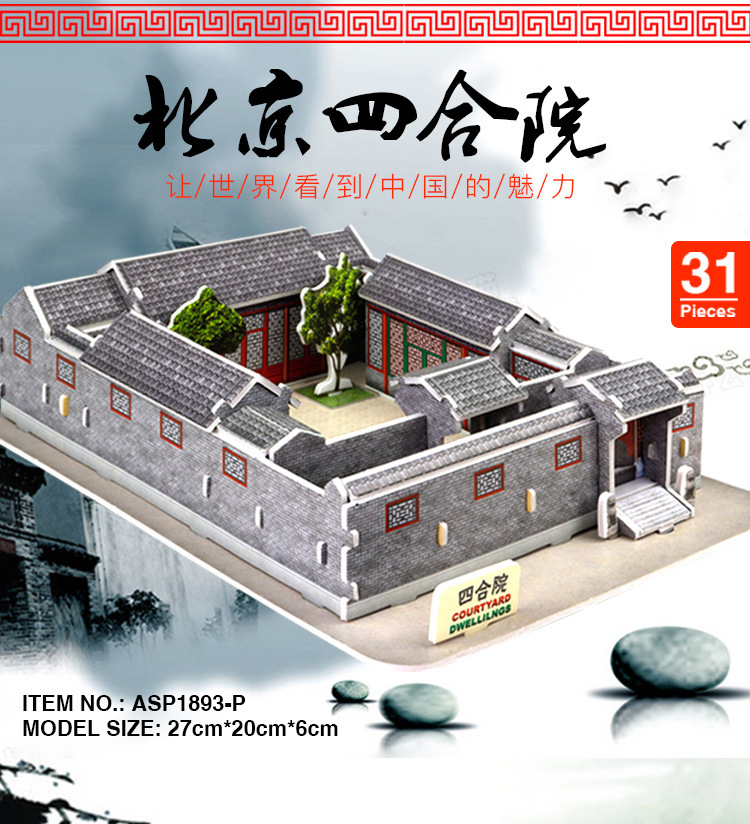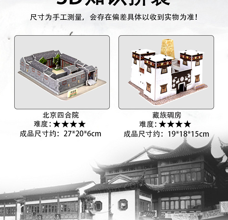 DIY 어린이용 새로운 3D 입체 퍼즐 모델 학교 선물 종이 수제 장난감 중국풍 건축 조립 퍼즐