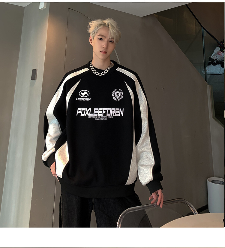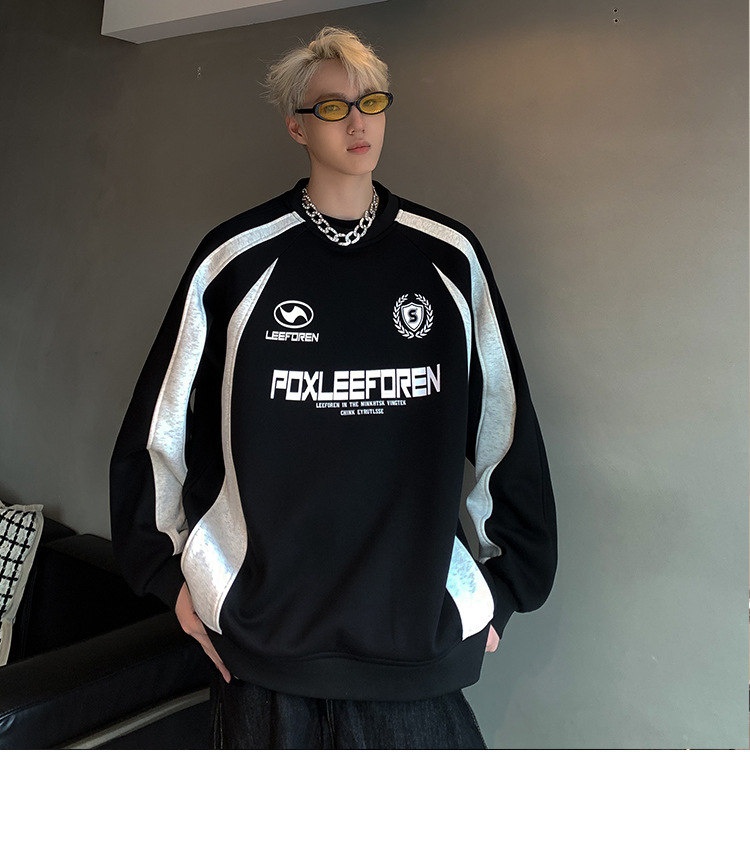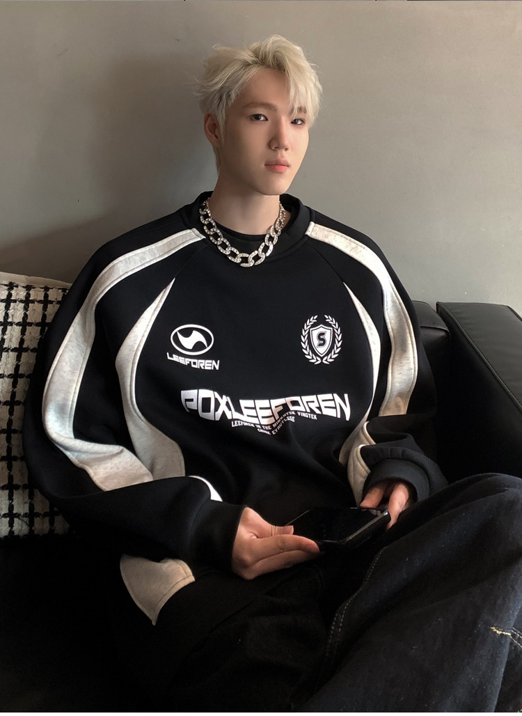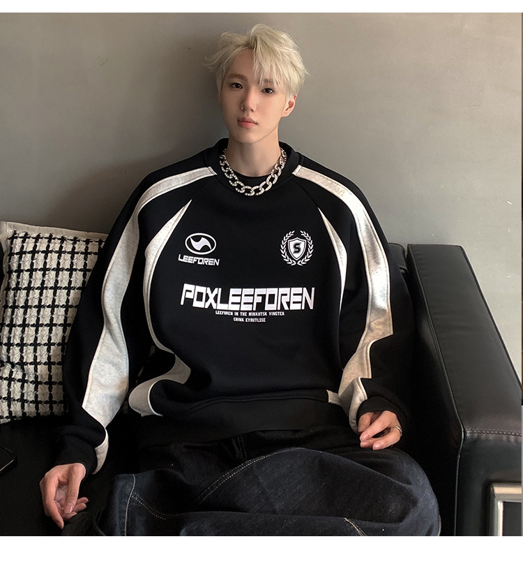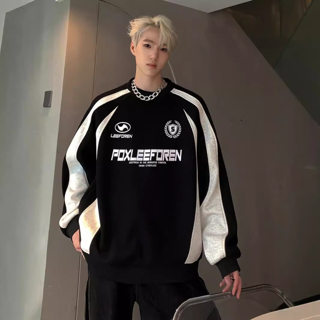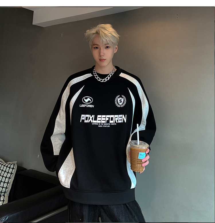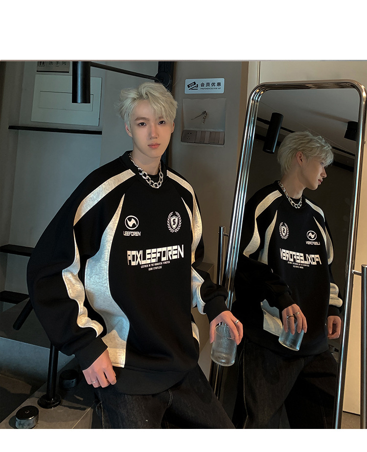 스웨트 셔츠 남자의 2024 봄과 가을 새로운 미국 하이 스트리트 헤비 트렌디 브랜드 레트로 스티칭 대조 컬러 느슨한 캐주얼 재킷스토어 가기